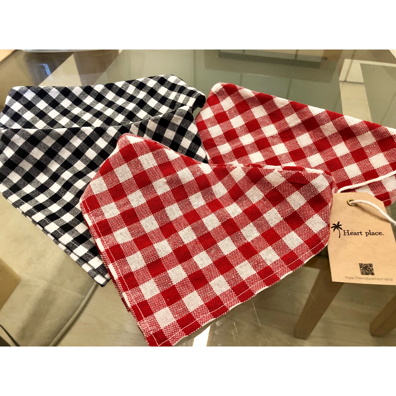 製作中のギンガムチェックのバンダナ。