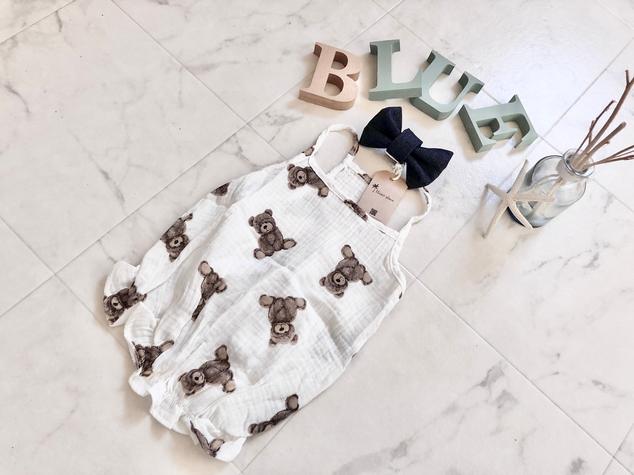 ベビー服のような、優しいガーゼ生地のくまちゃんトップス。