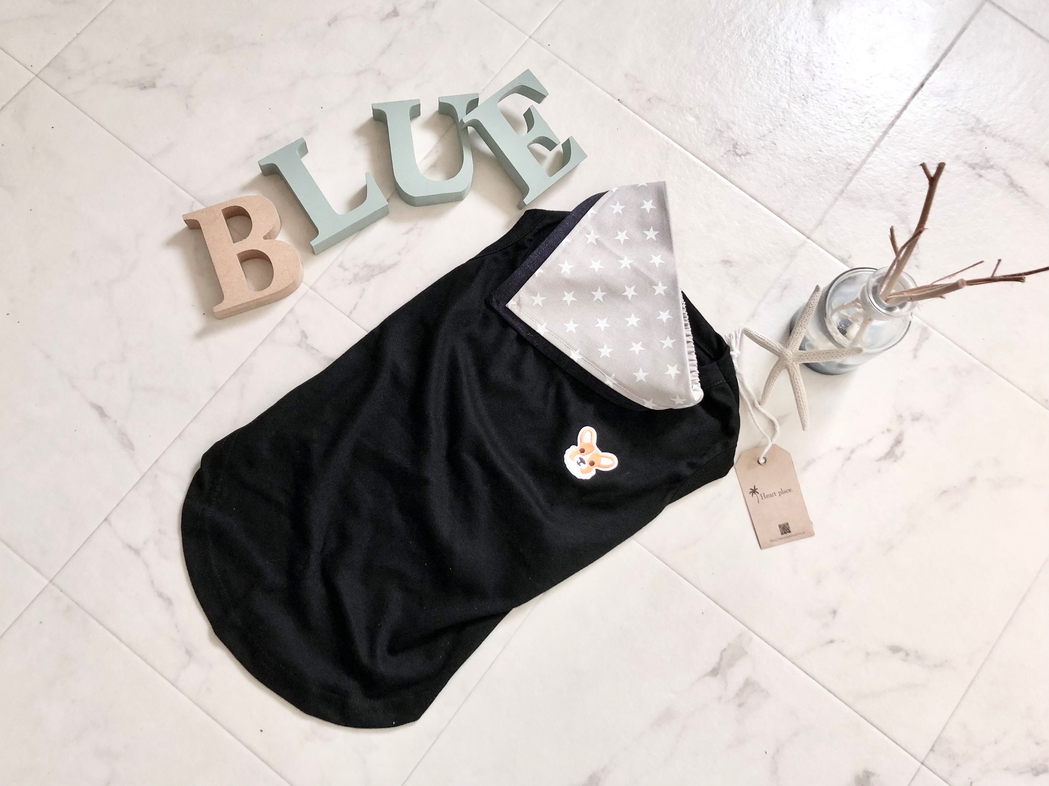 今回はグレージュカラーの星柄バンダナをワンポイントに組み合わせてみました。