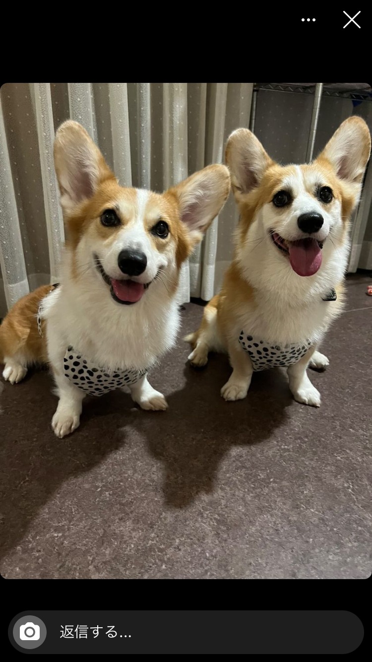 こちらの笑顔が眩しいコーギーちゃんたちは