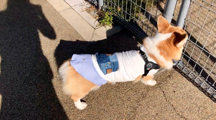 着せた状態でドッグラン内を思いっきり走り回ってもらいました。