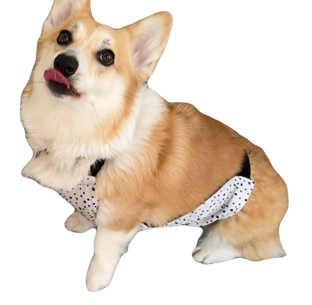※体型ゆえ、被毛が著しく汚れやすいコーギー向けに製作したエプロンです。そのため、Sサイズであっても大きめの作りとなっております。該当犬種以外の方はご注意下さい。