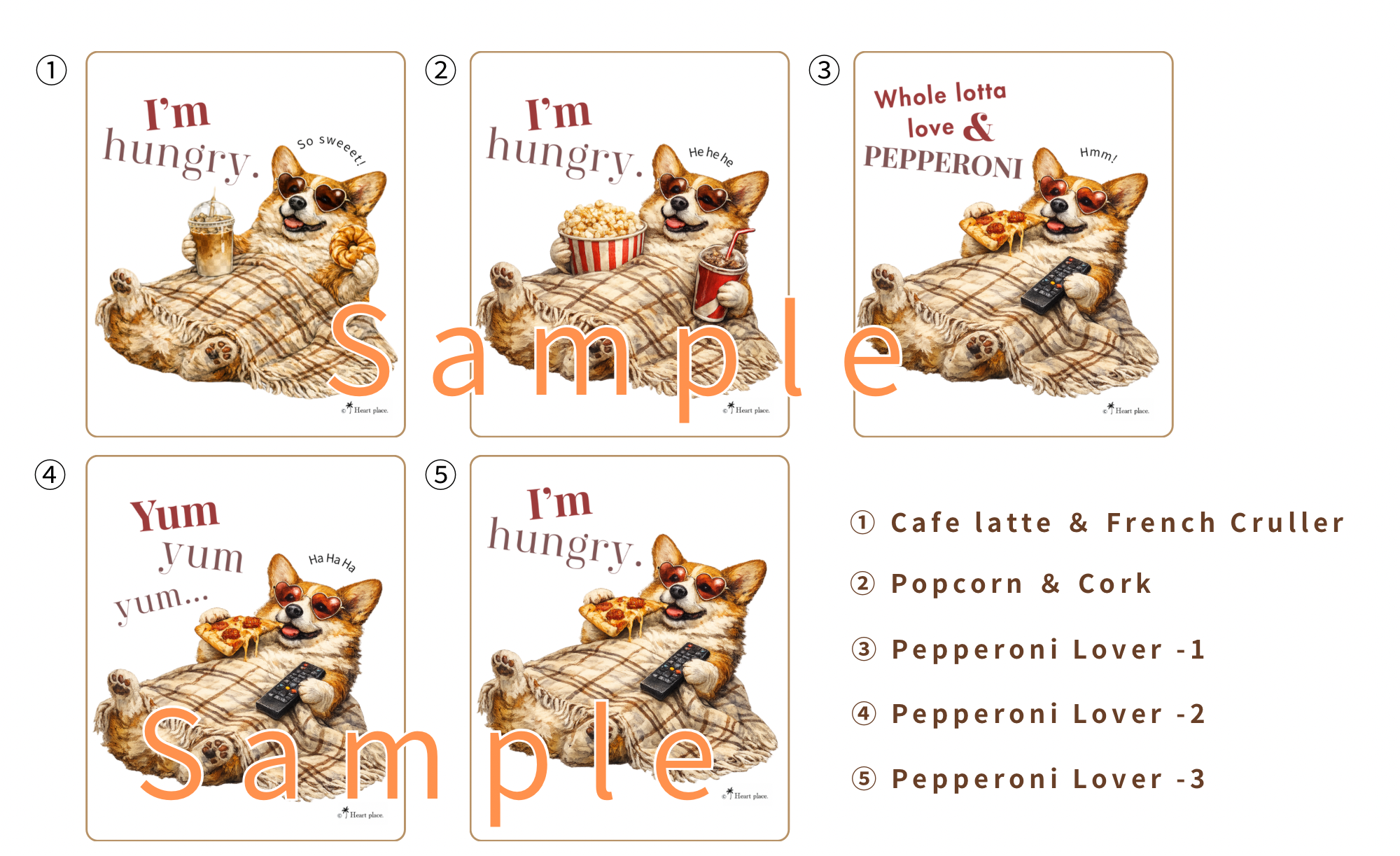 食いしん坊なコーギーらしさ全開のカット、全5種類。