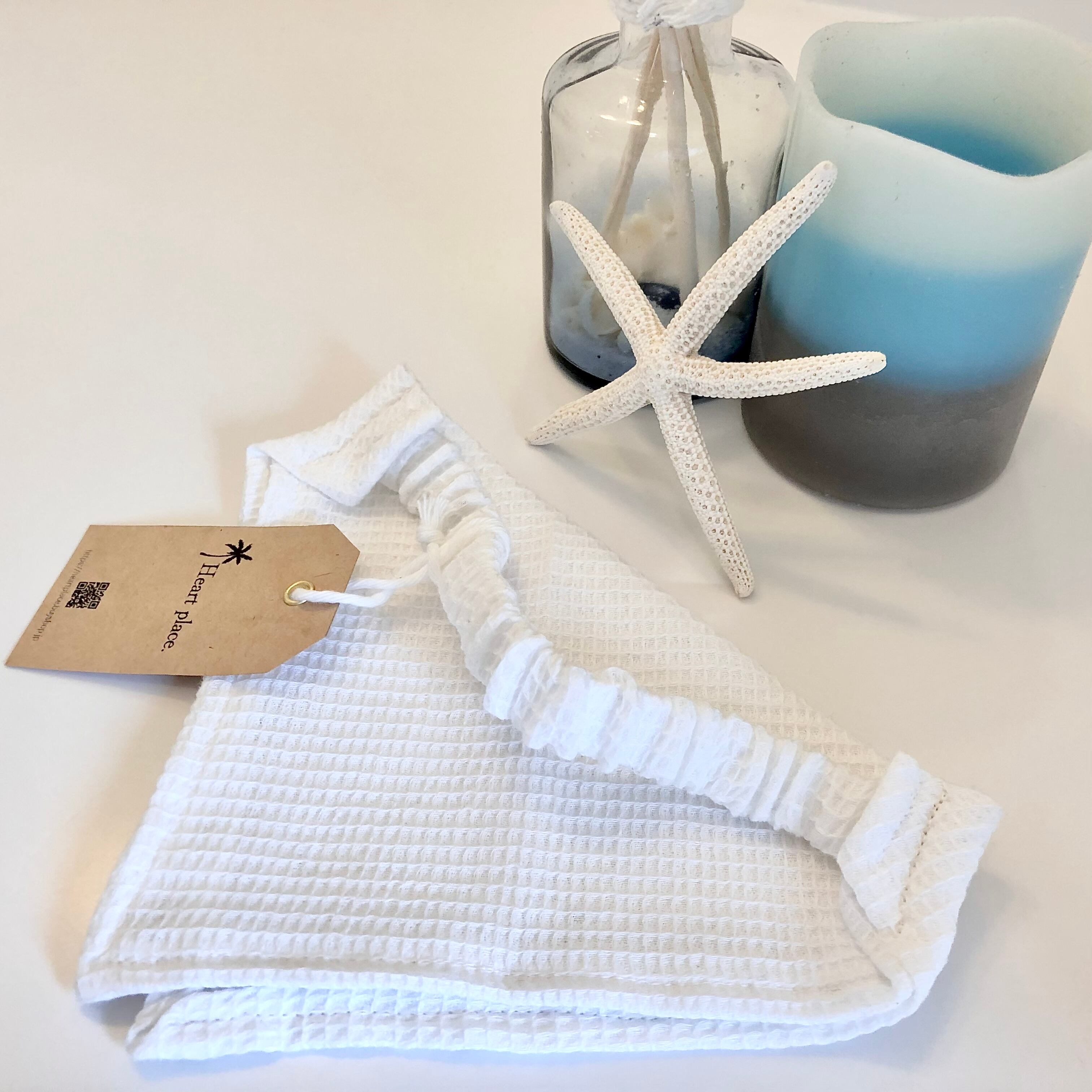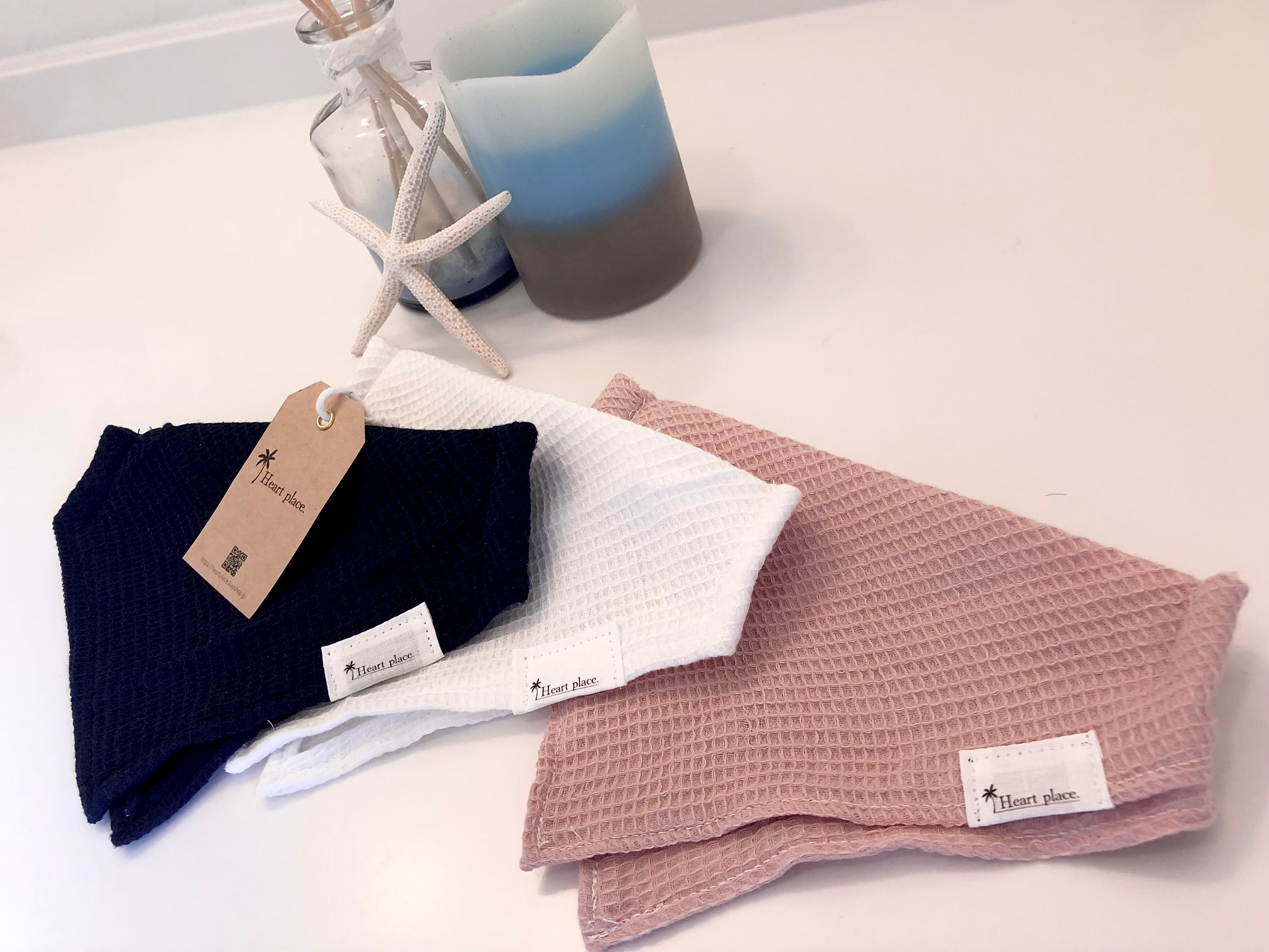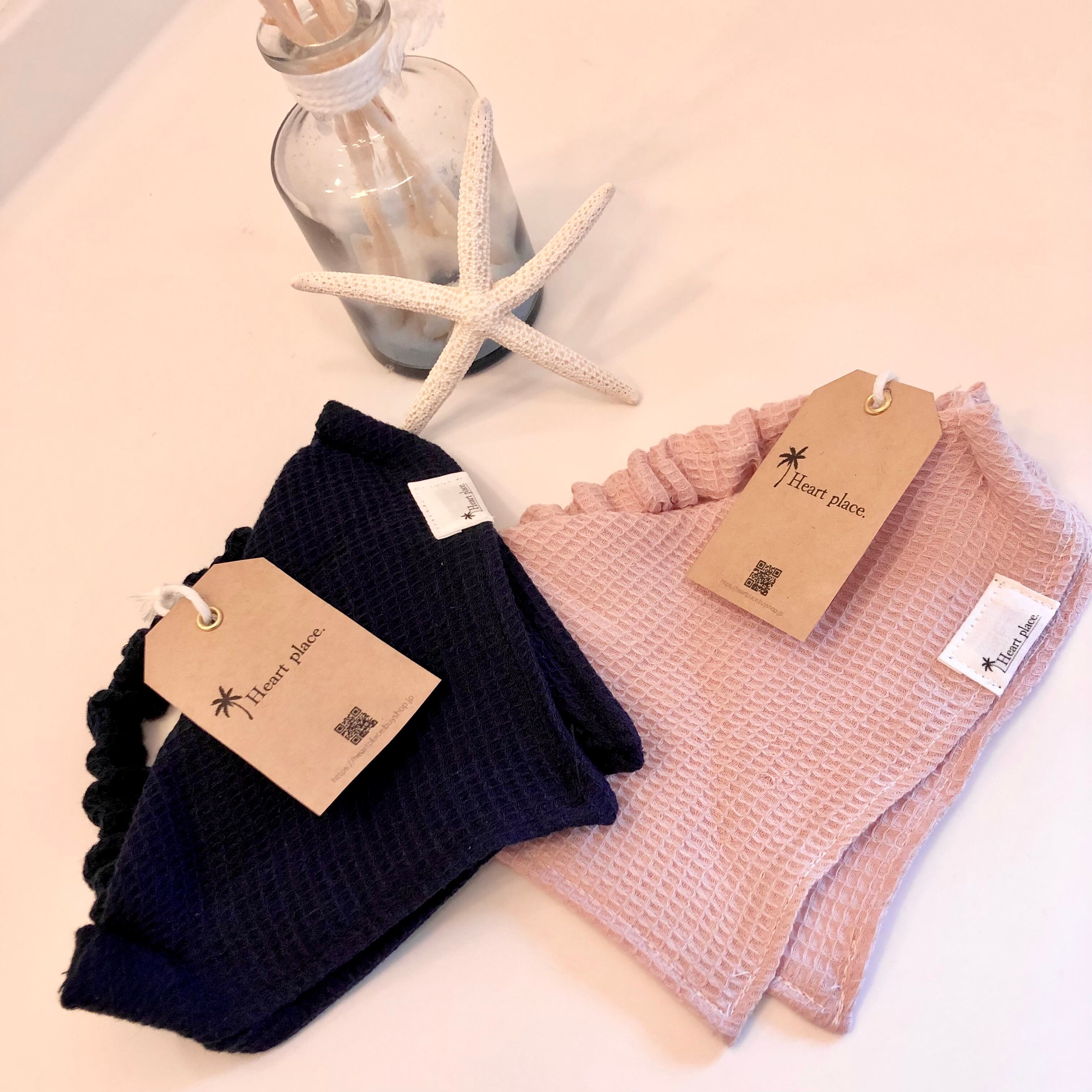 バンダナのカラーはどんな毛色の子にも合うくすみピンク、深みのあるネイビー、ホワイトをご用意いたしました。 伸縮性のあるゴムストラップのため、首から通せば着脱も簡単です。 適応サイズは首周りが35〜40センチのコーギー含む中型犬向けサイズになります。 サイズ感等他にも気になる事がございましたらお気軽にお問い合わせ下さい。