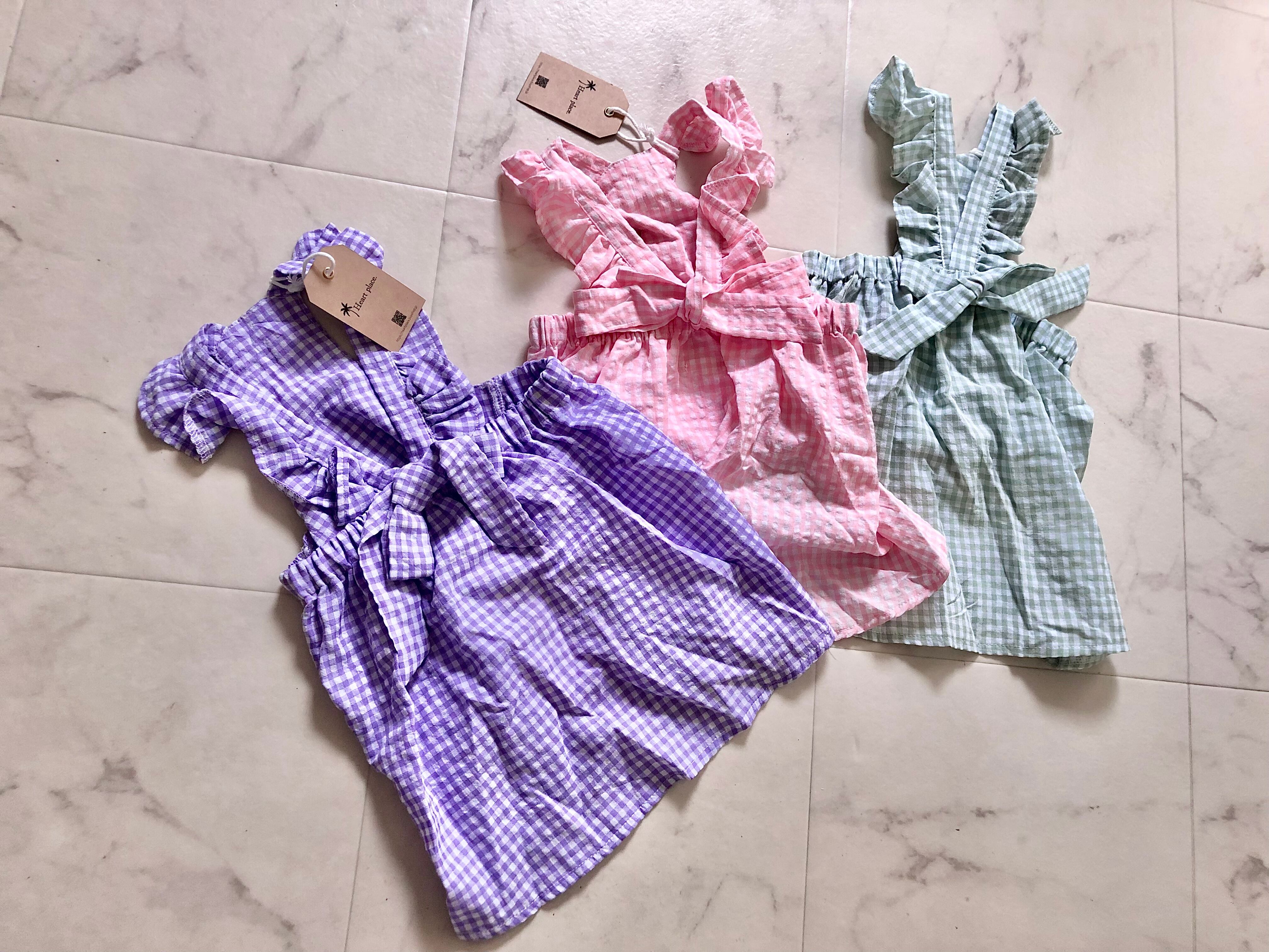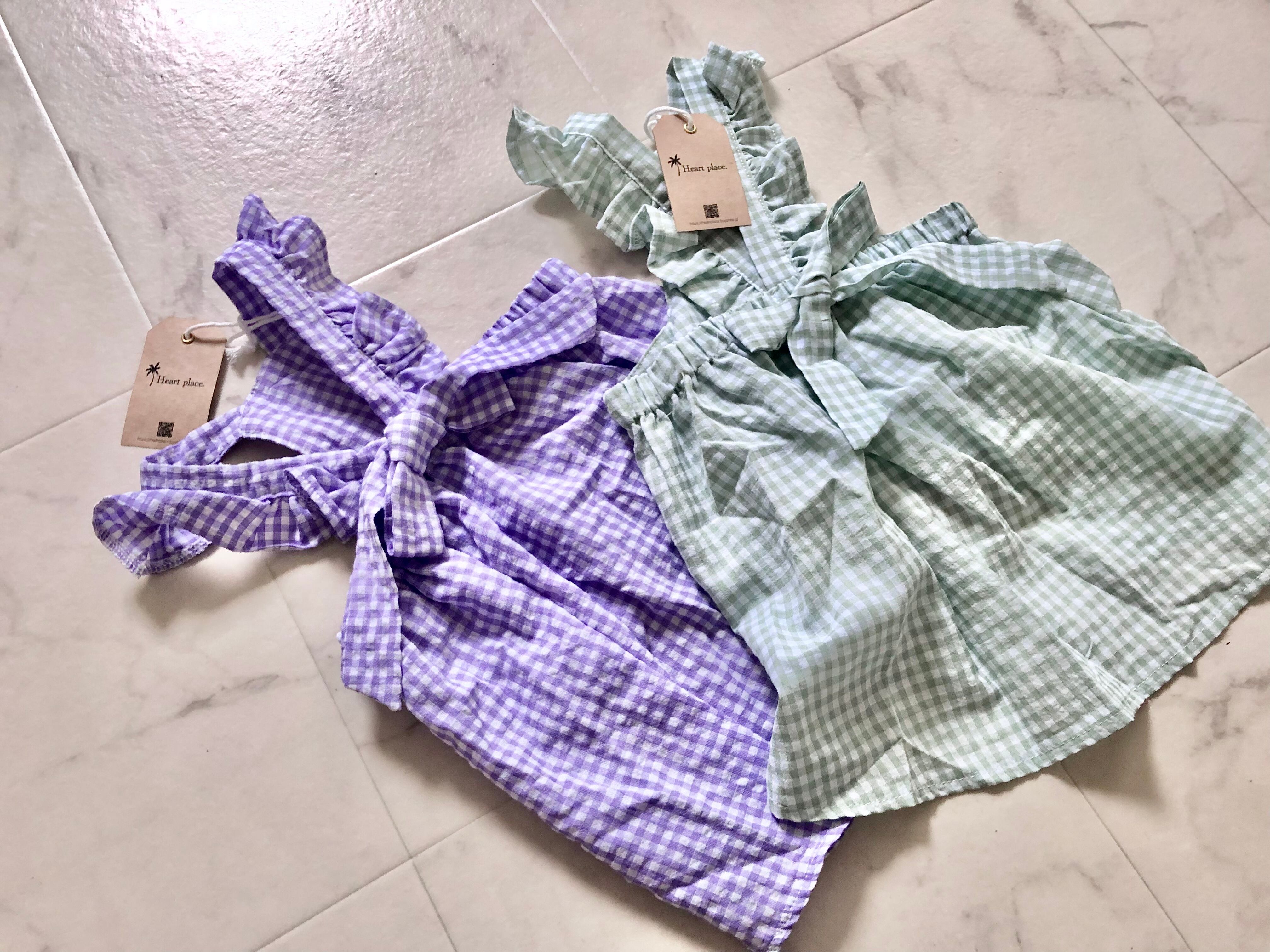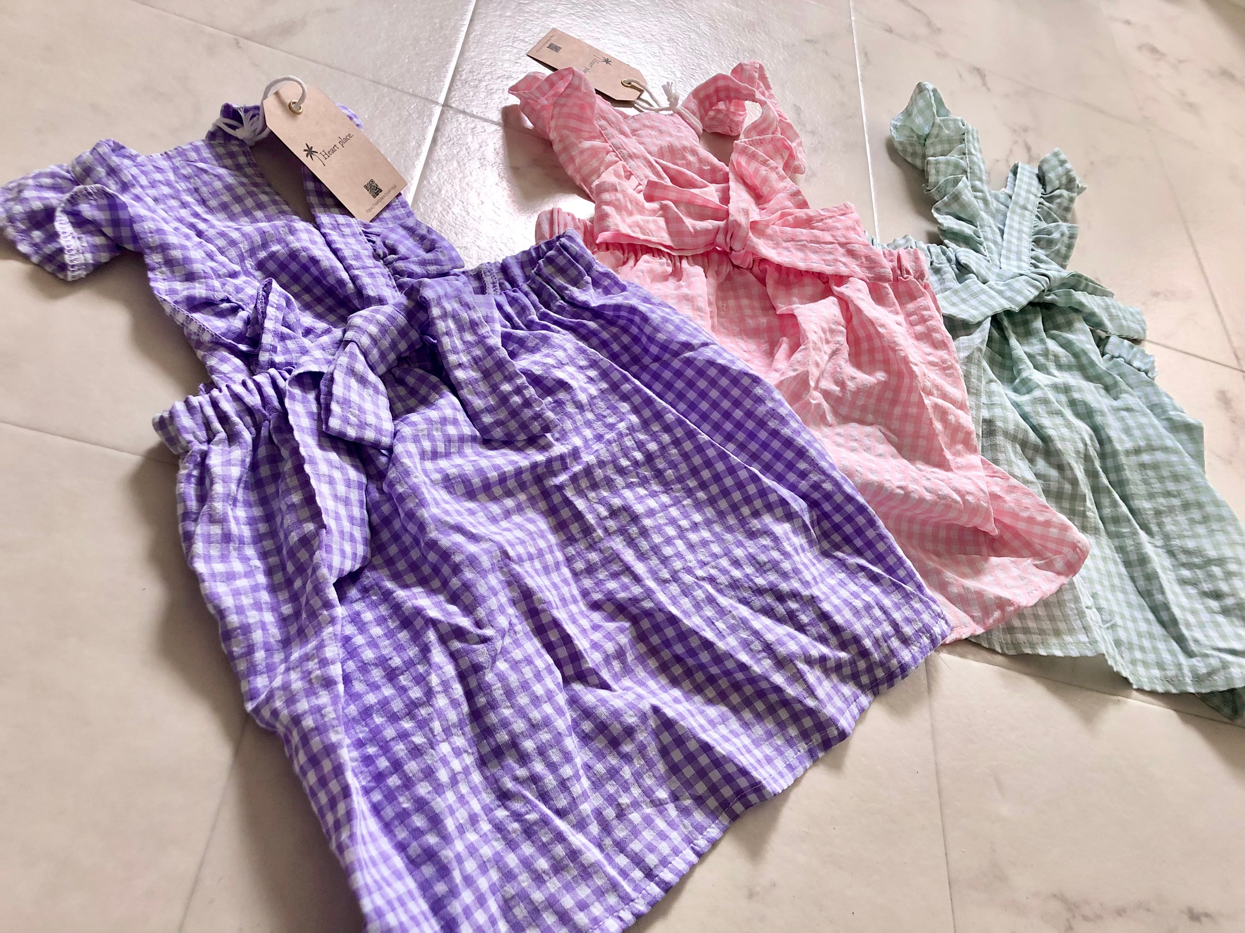 キャンディの包紙のようなチェック柄ワンピース。