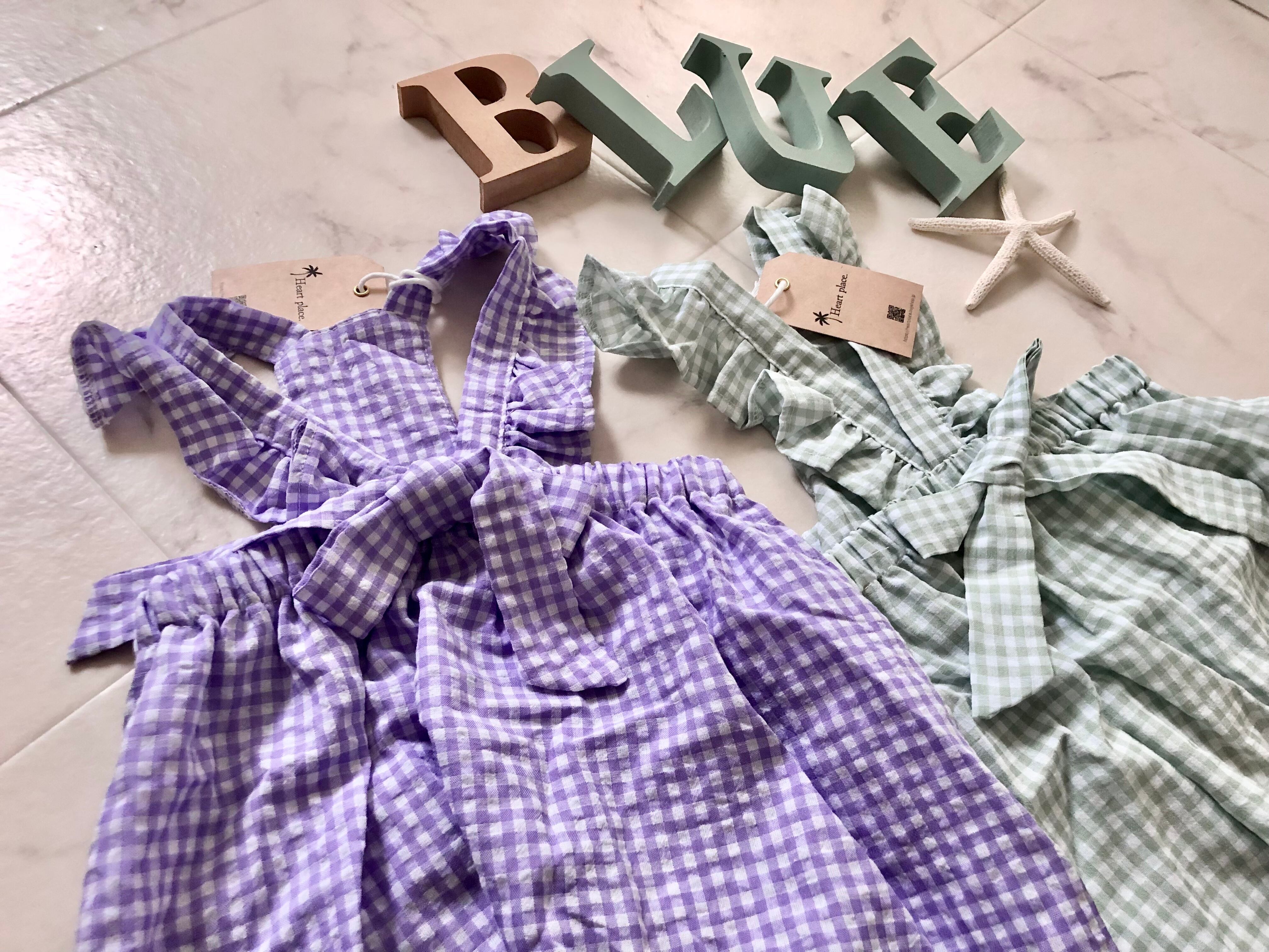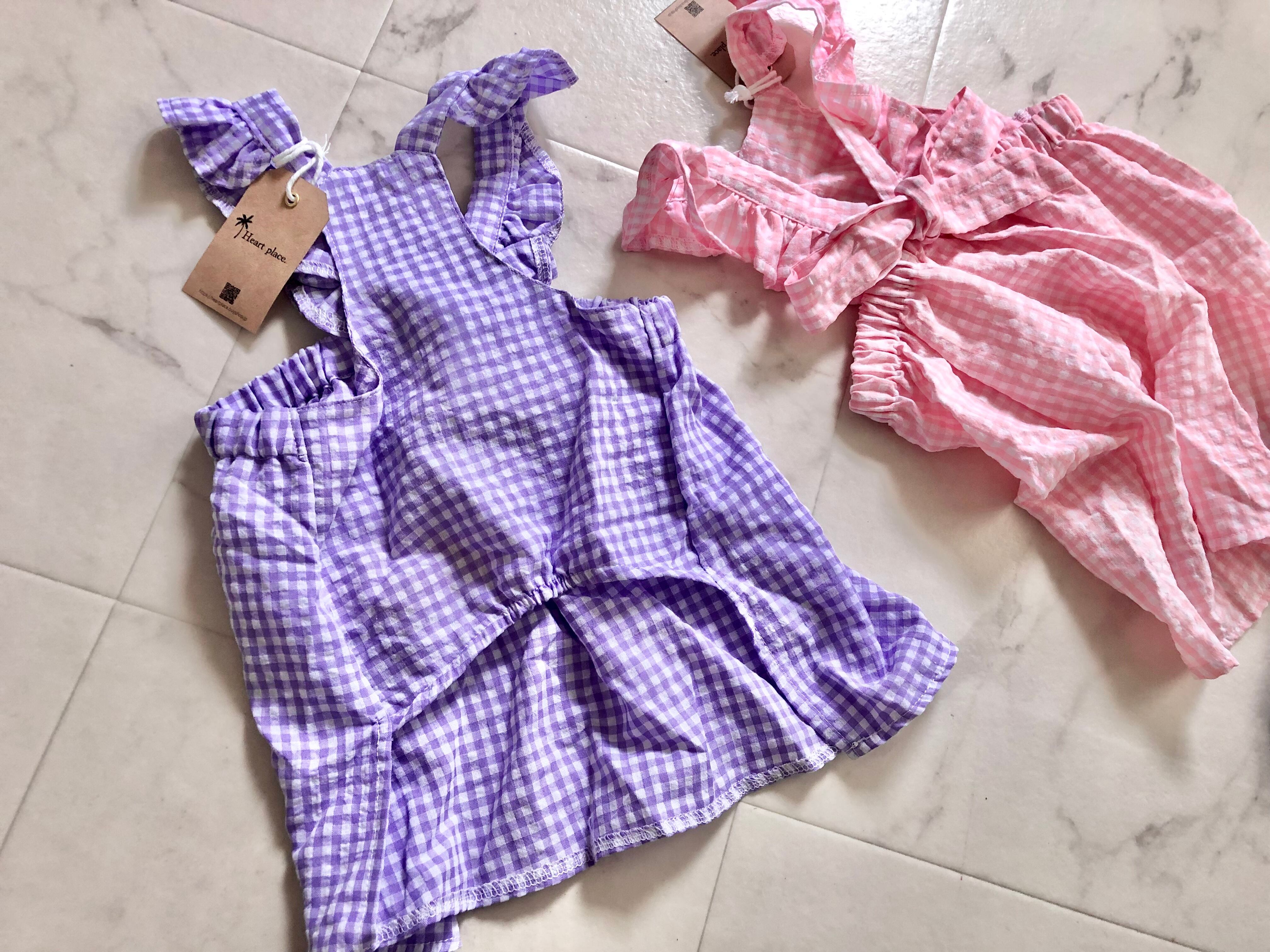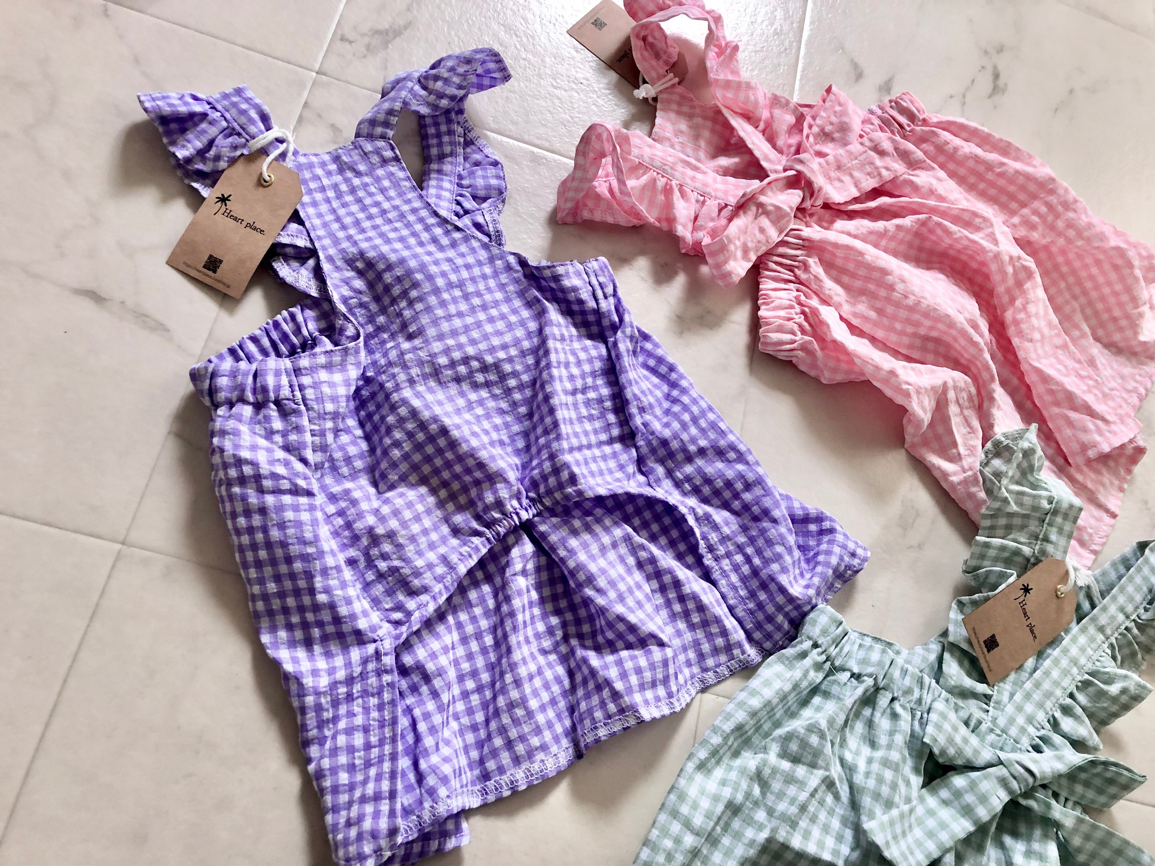 キャンディの包紙のようなチェック柄ワンピース。