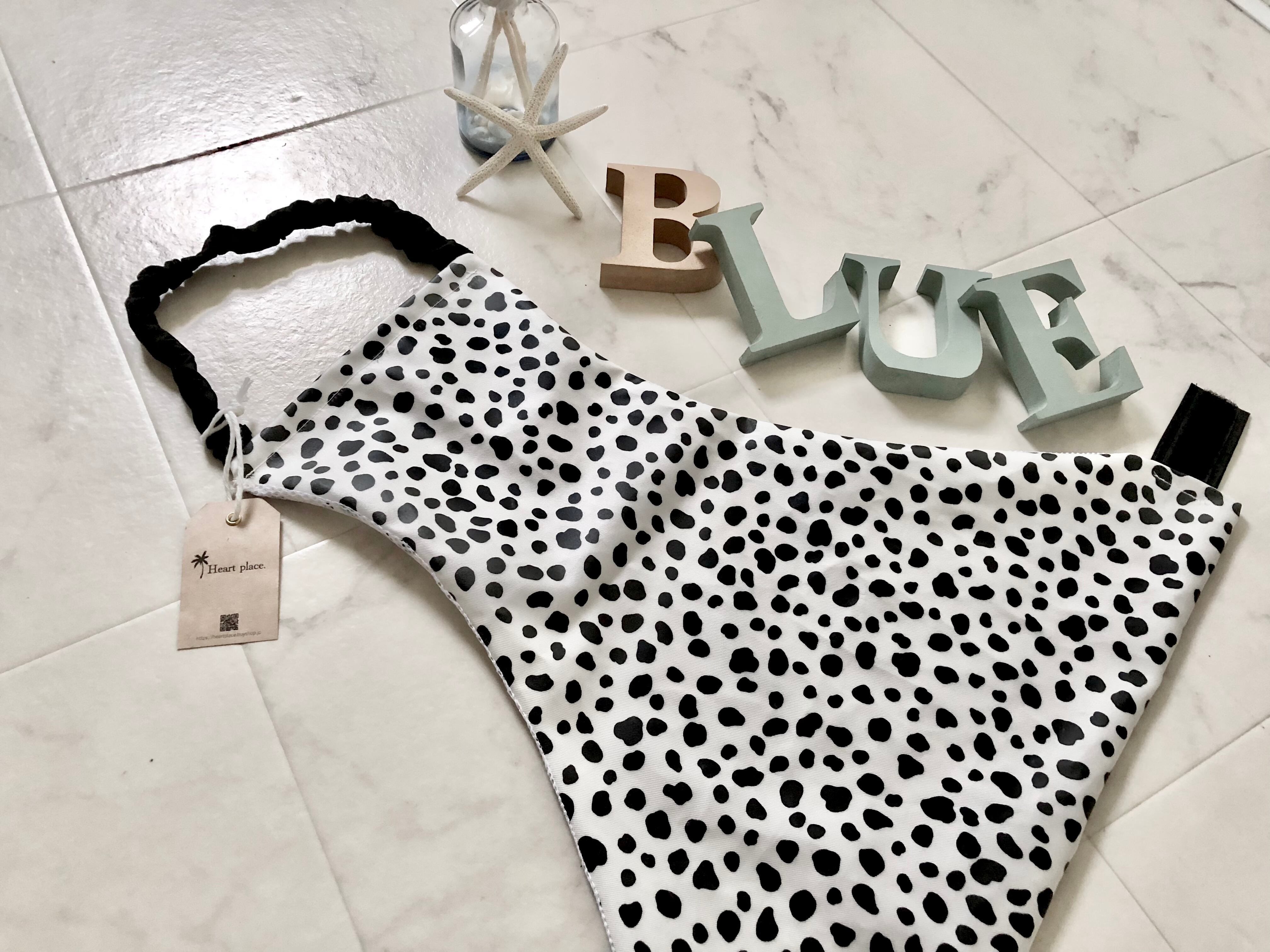 オトナ可愛いダルメシアン柄の泥除けエプロンです。