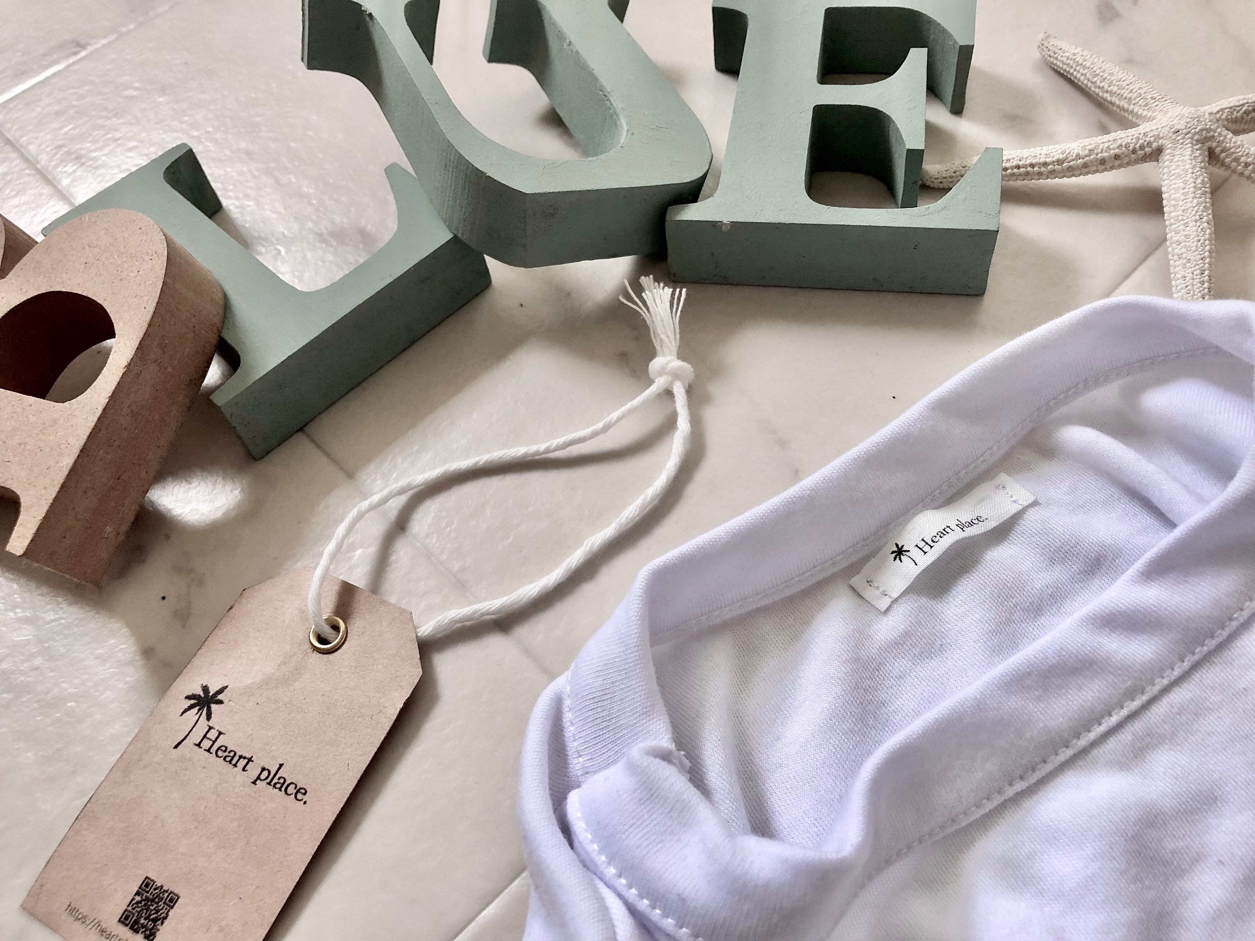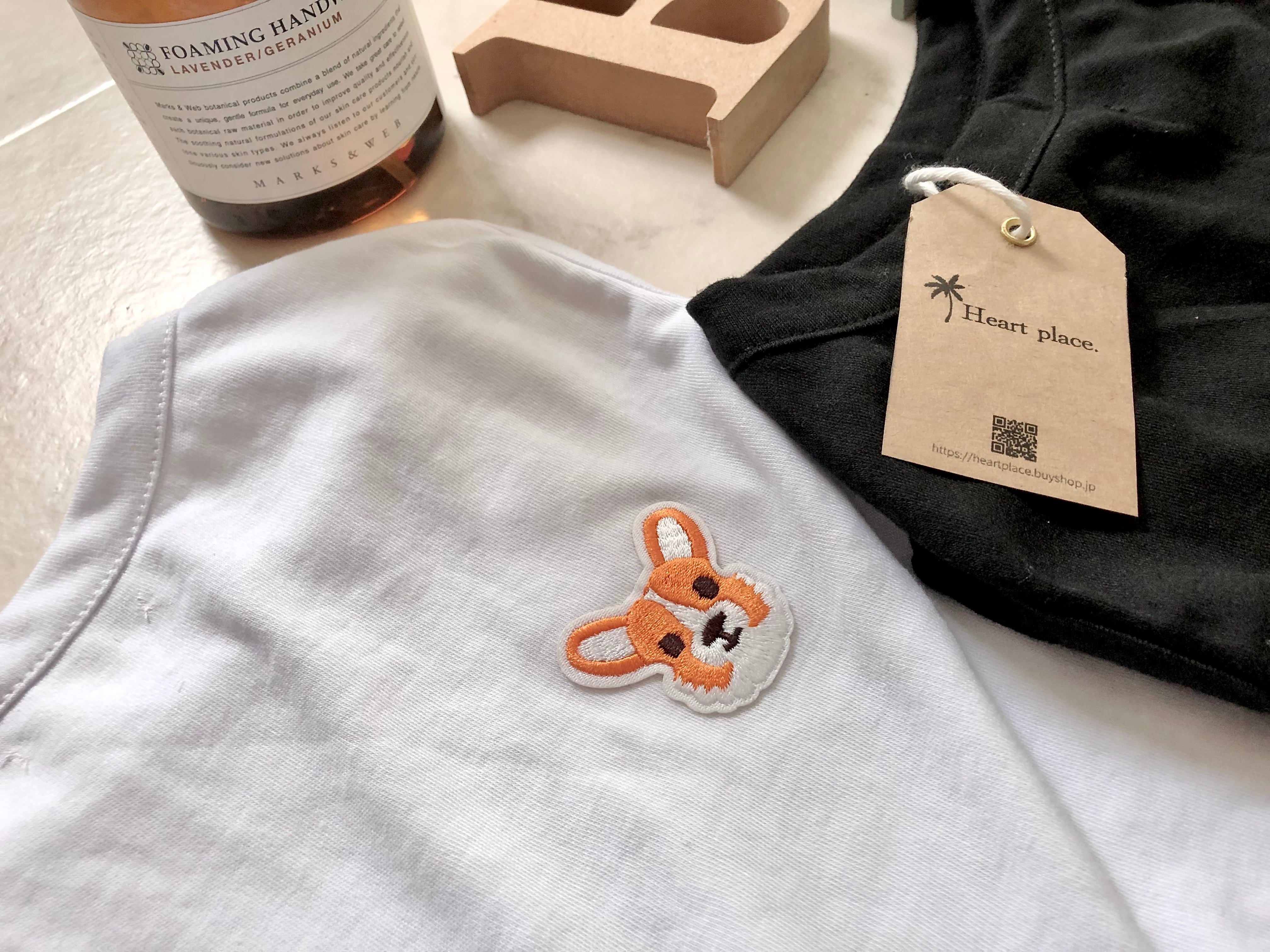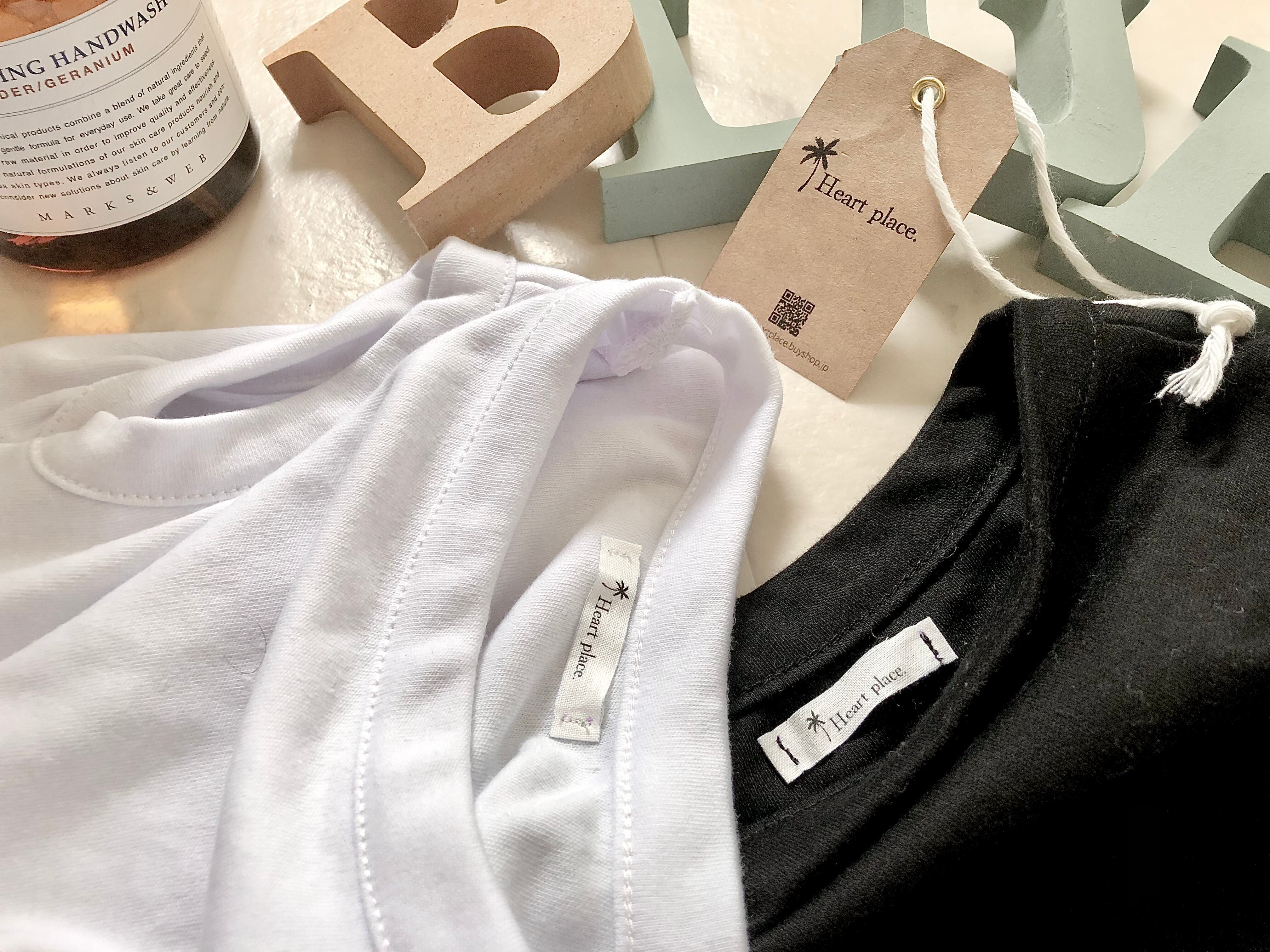 タグの大きさは2パターンともに5cm×6cm程。 背中側下部の真ん中に縫い付け致します。