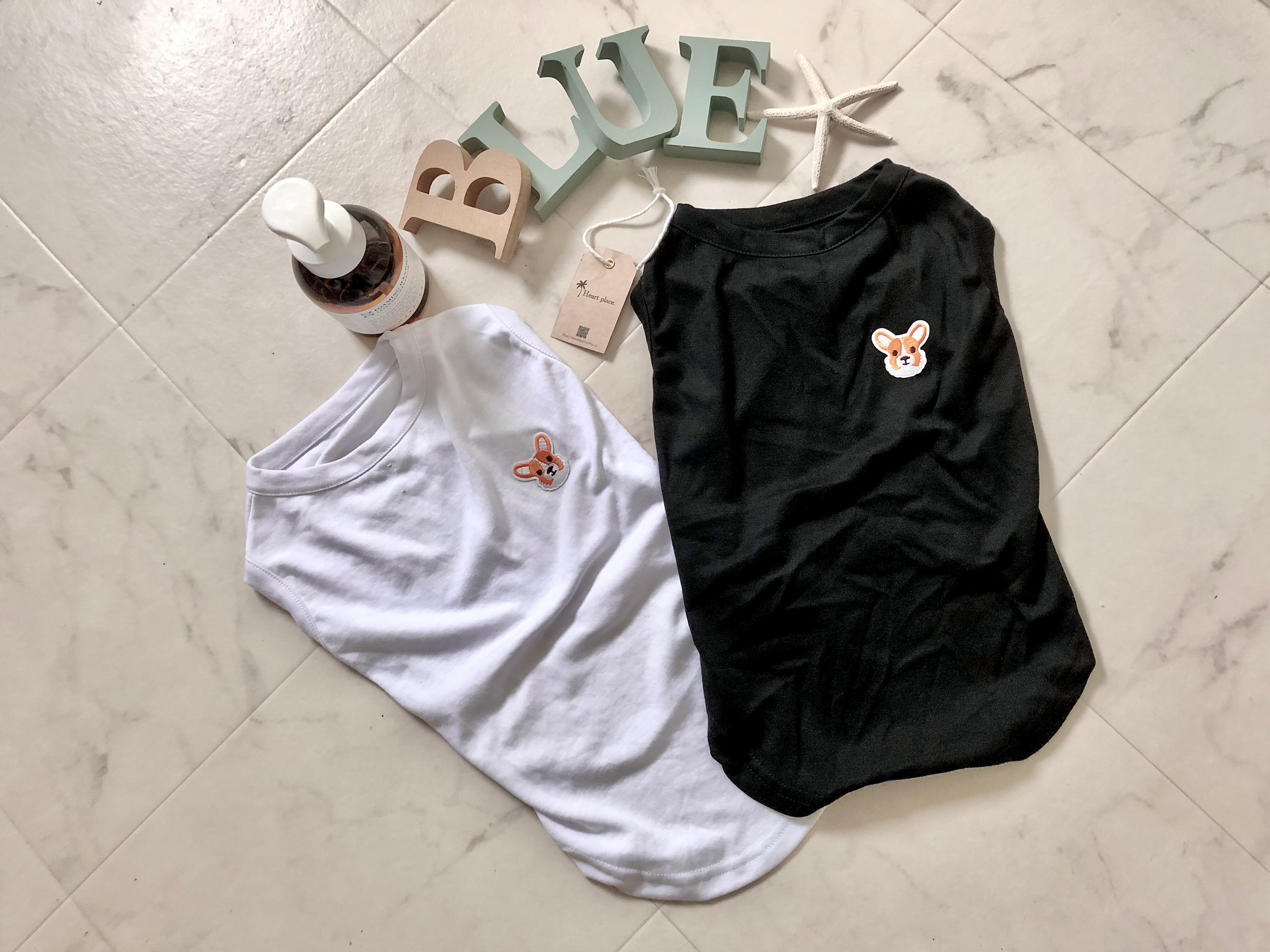 コーギーの刺繍が入ったノースリーブトップス。