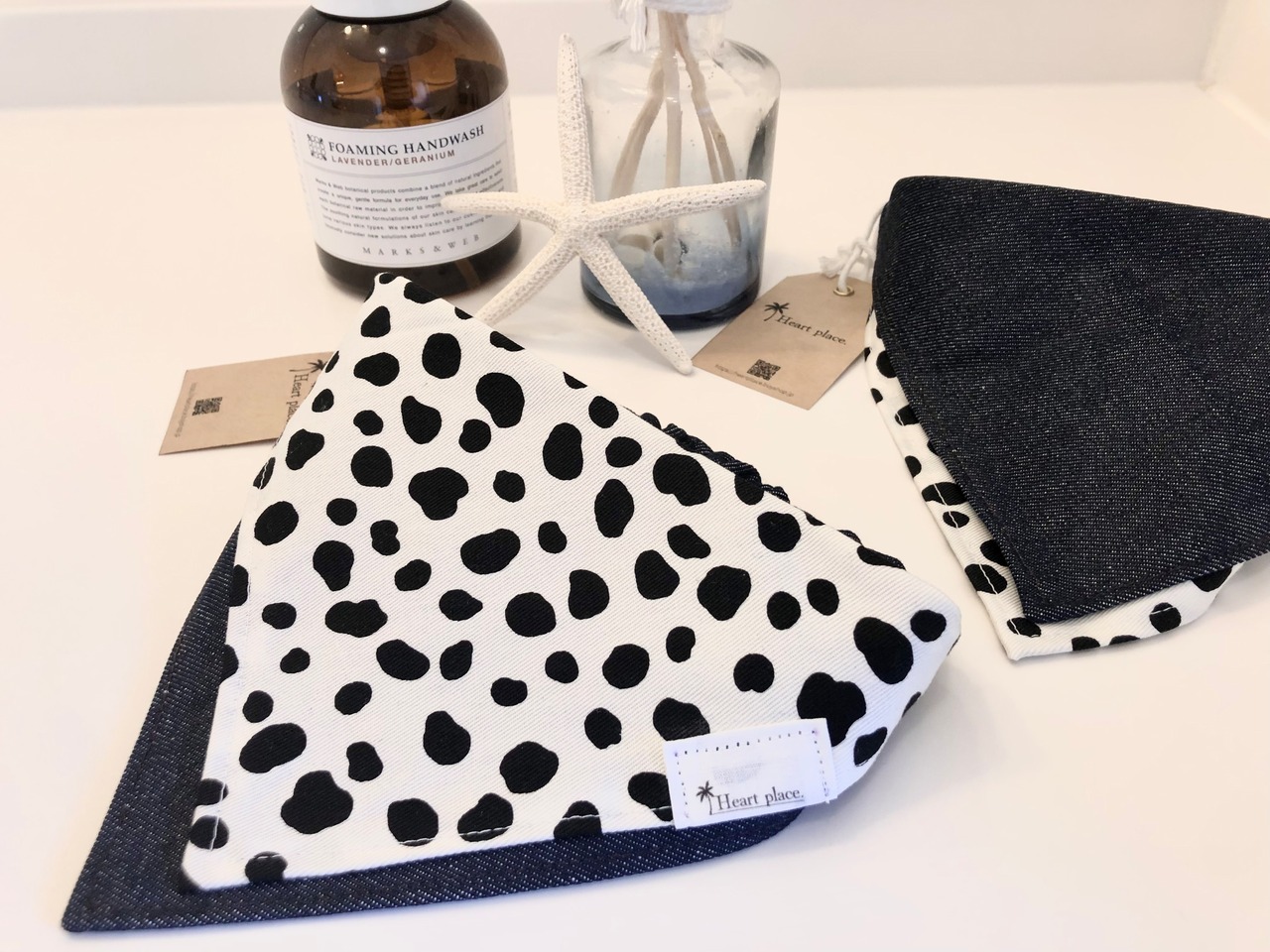 2つの異なる生地をあえて組み合わせたレイヤードバンダナ。