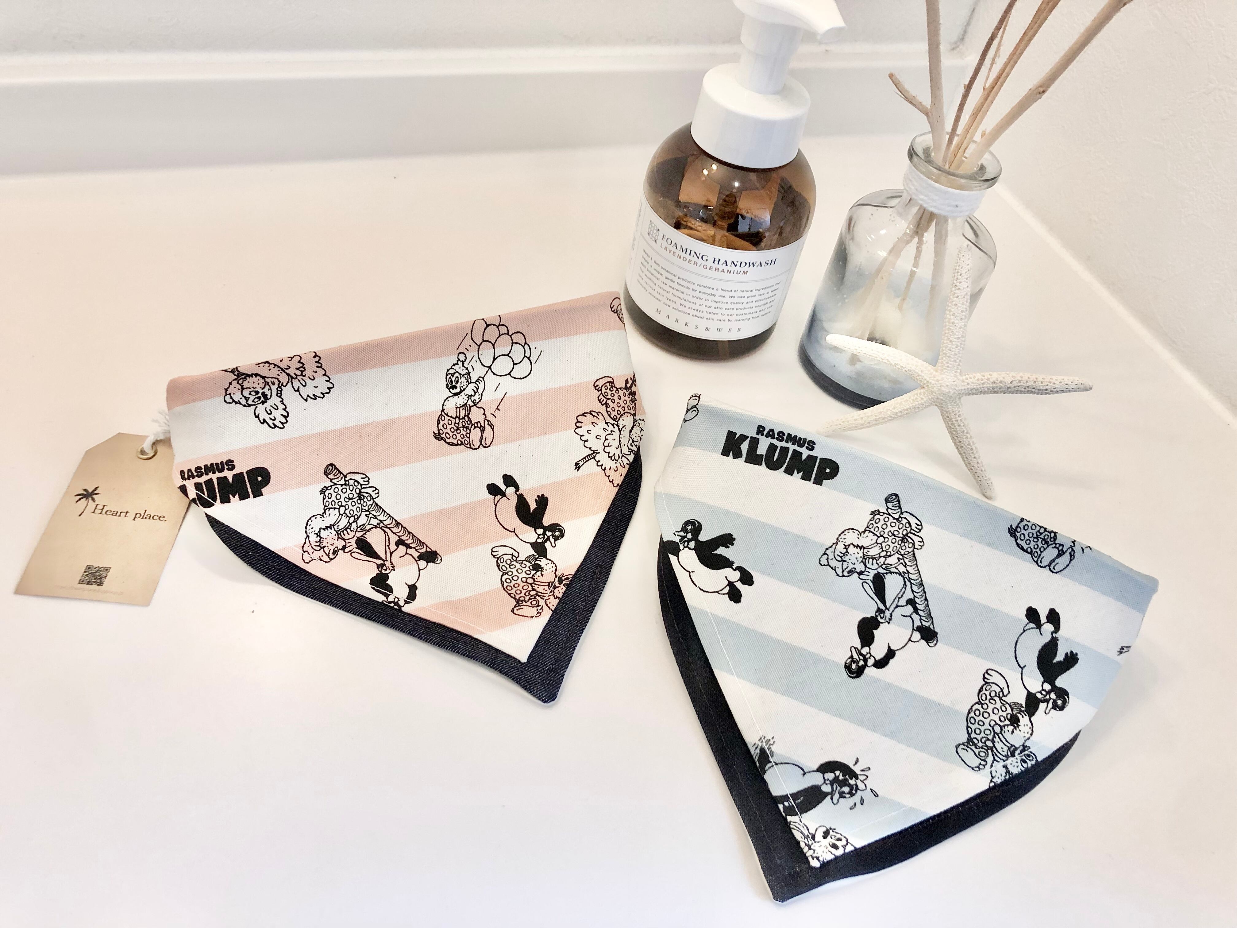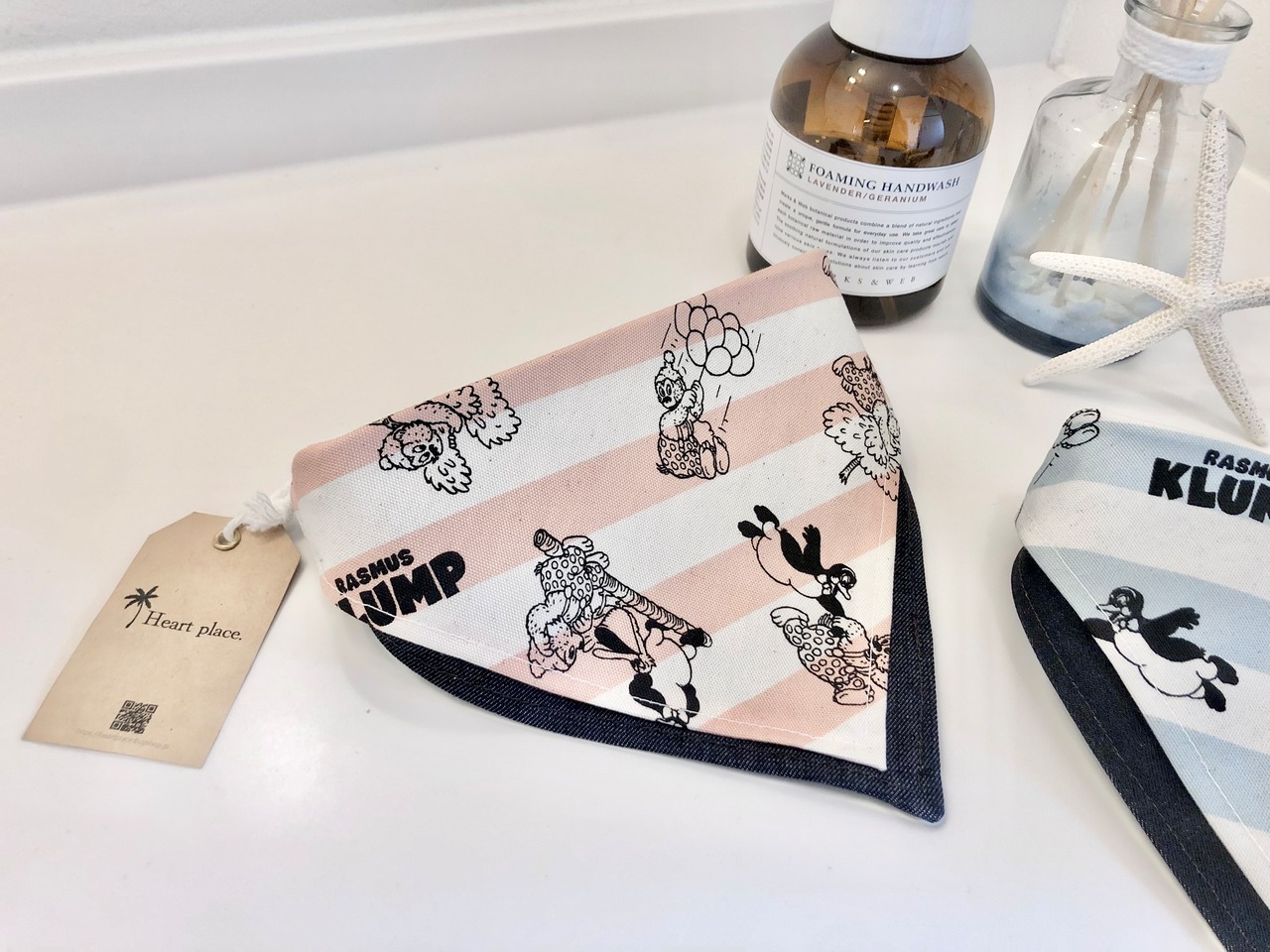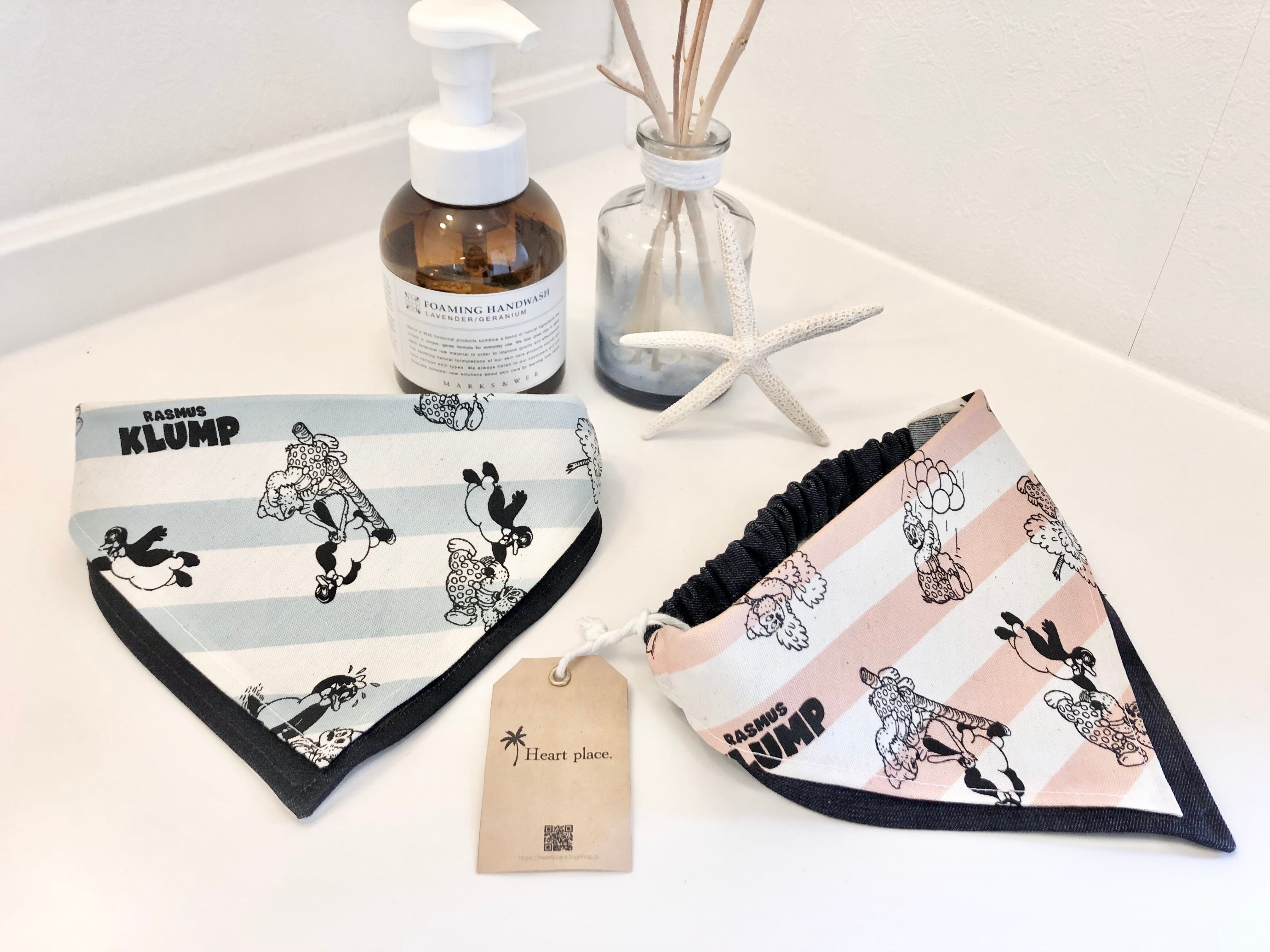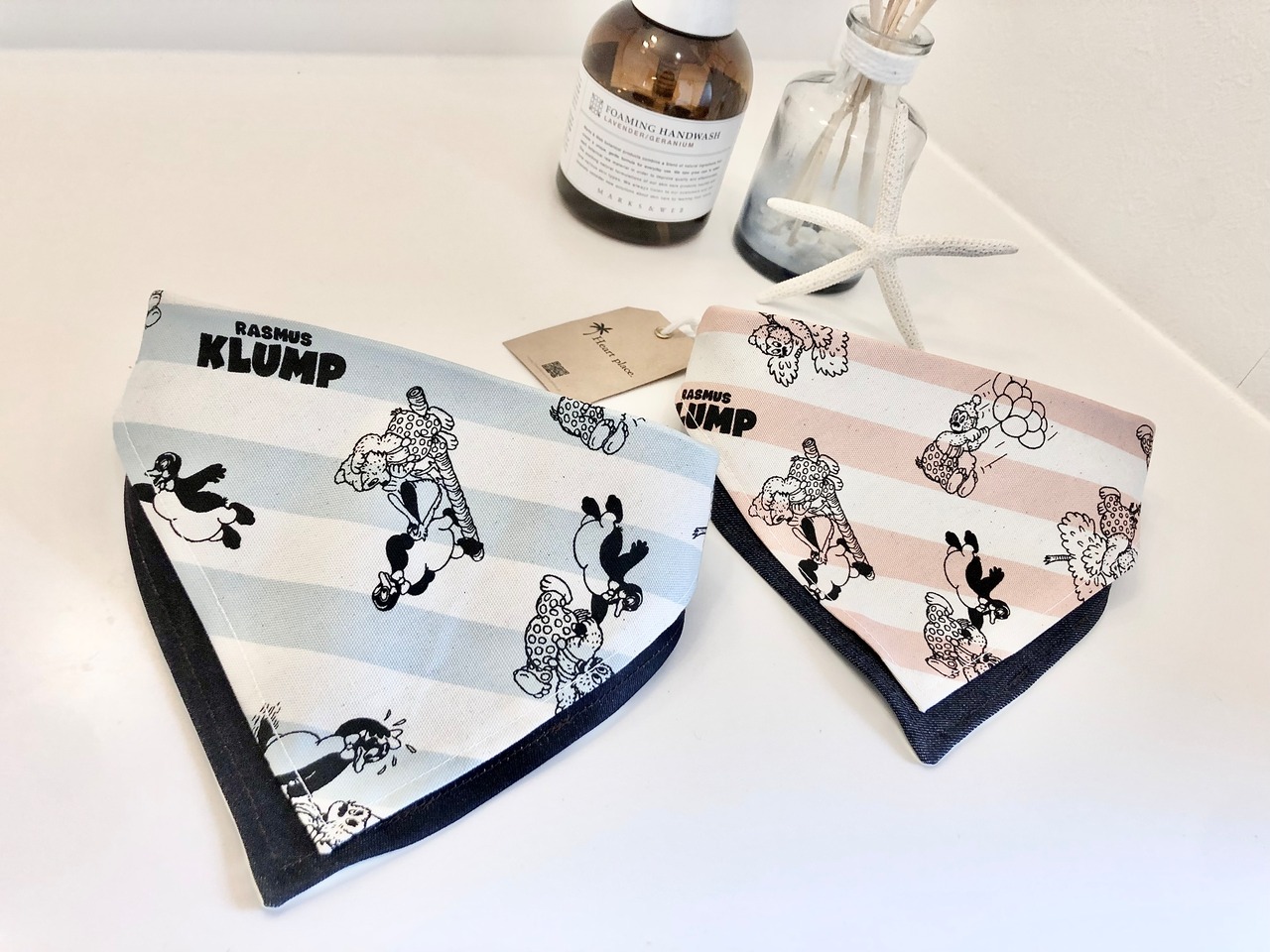 アメリカンポップなくまちゃんがプリントされた生地とレイヤードにデニムを組み合わせたバンダナ。