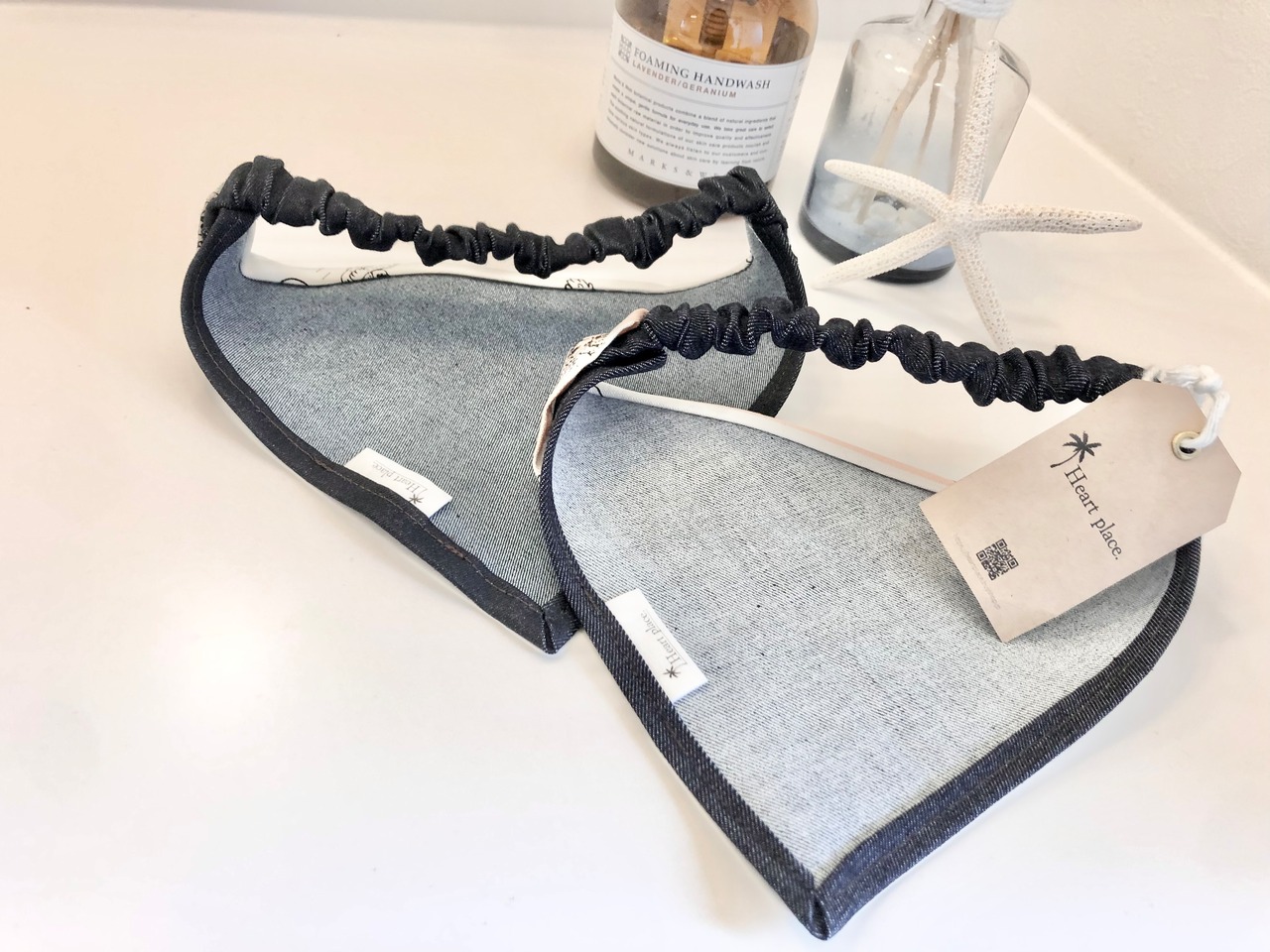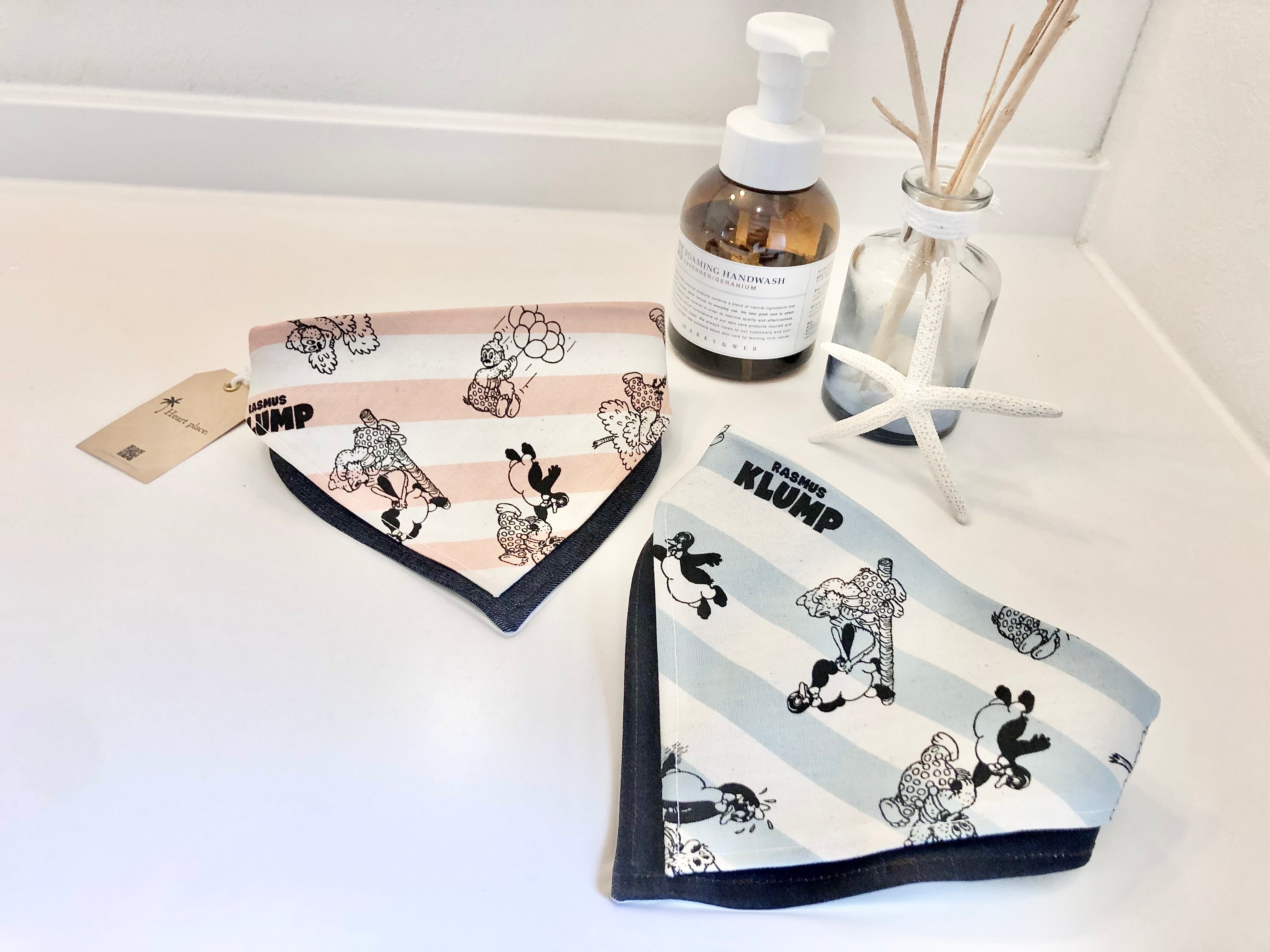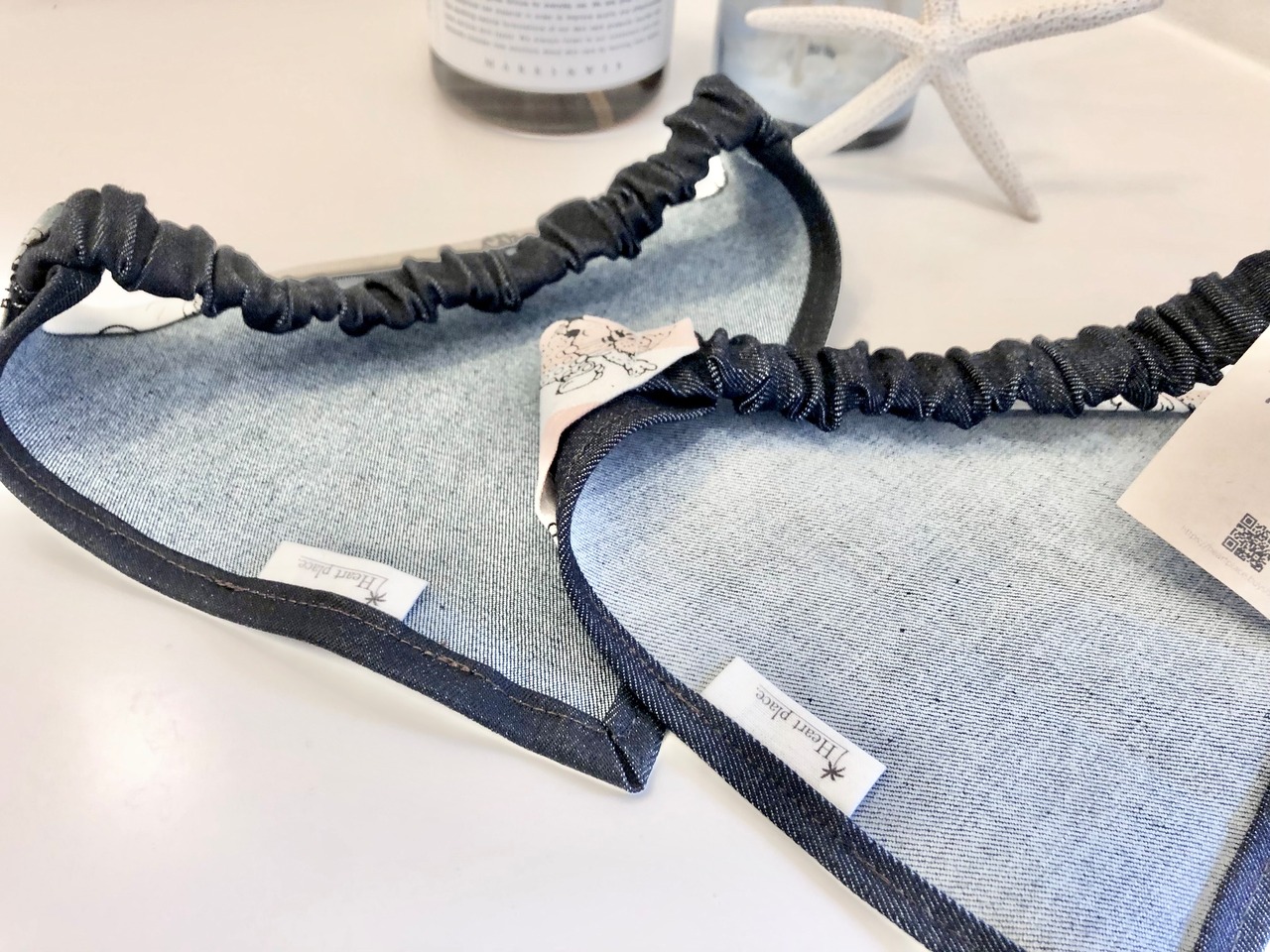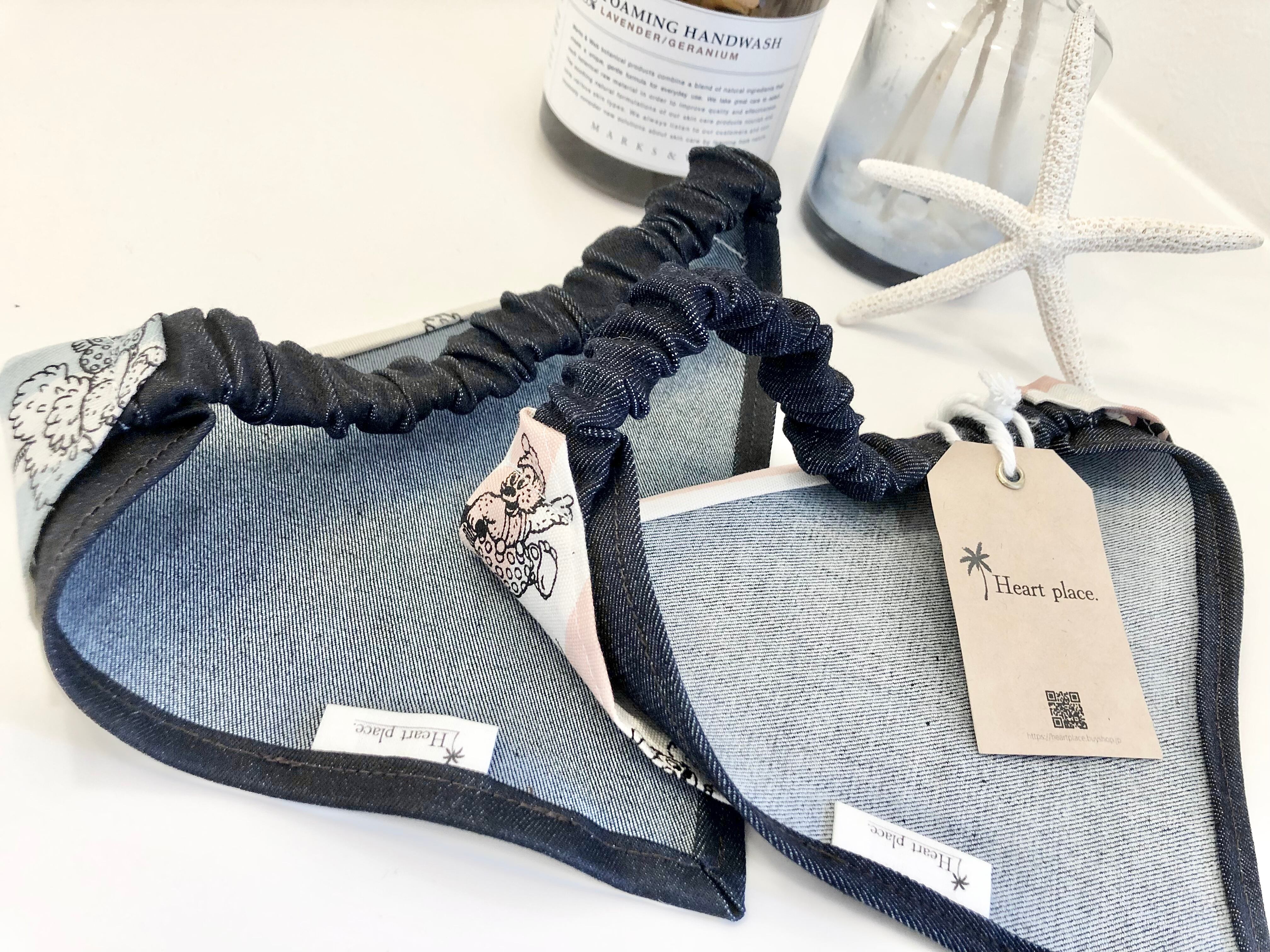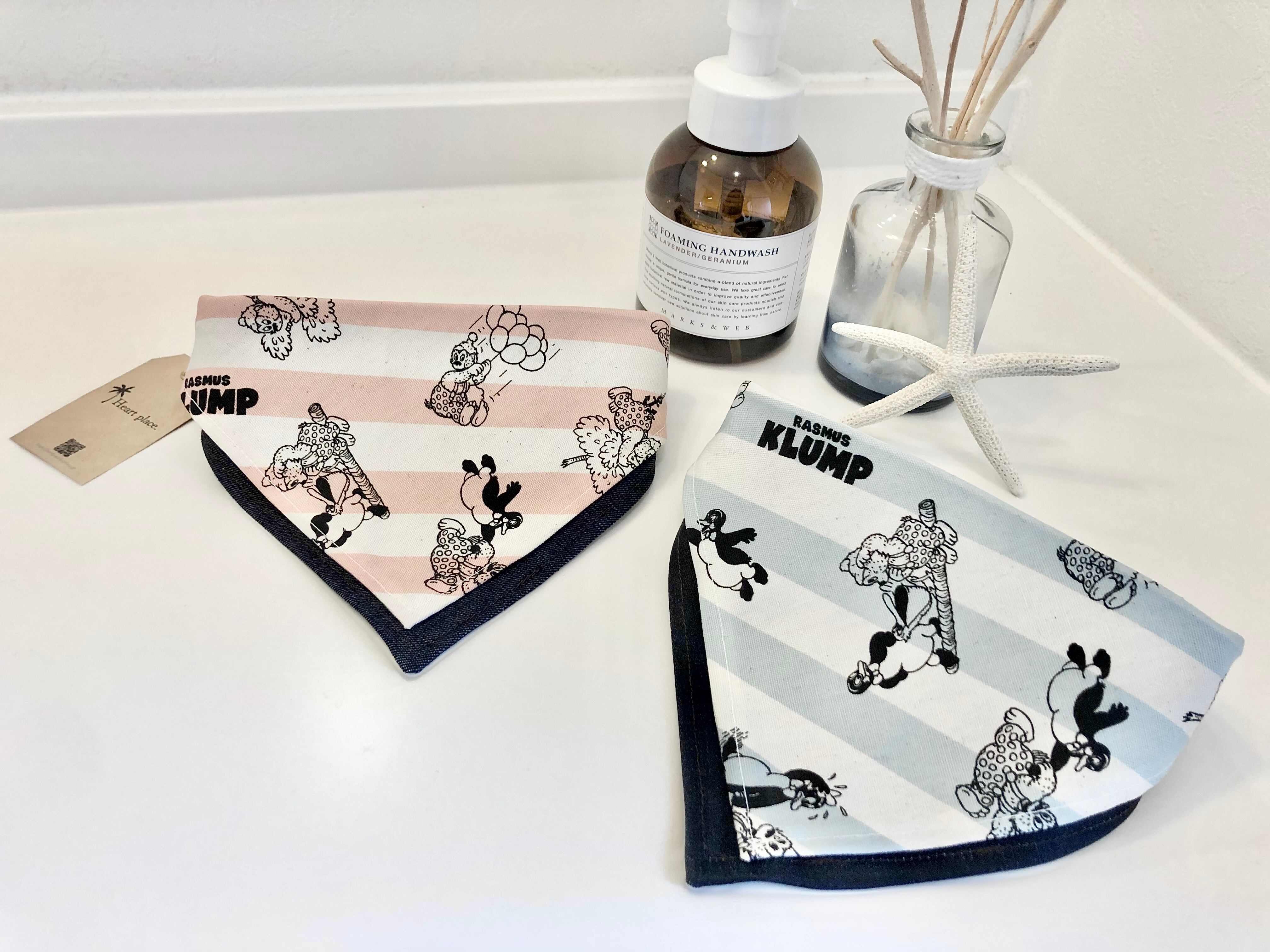 アメリカンポップなくまちゃんがプリントされた生地とレイヤードにデニムを組み合わせたバンダナ。