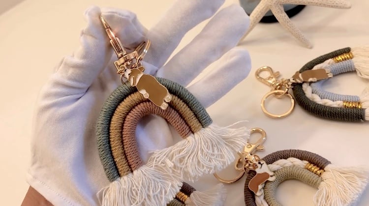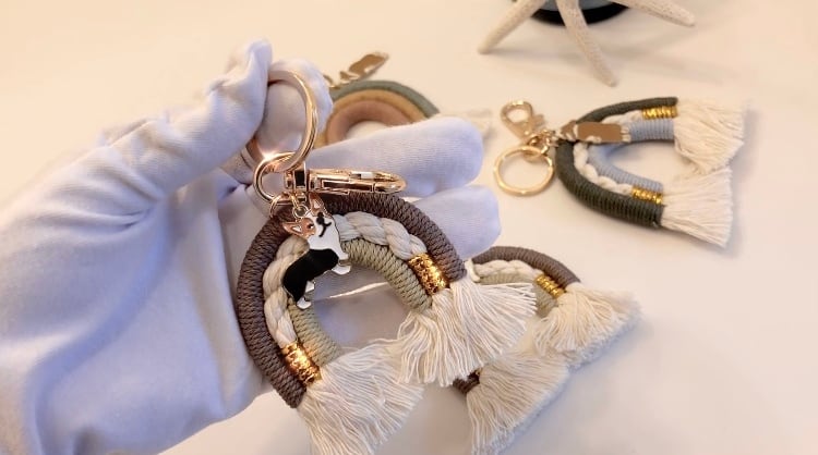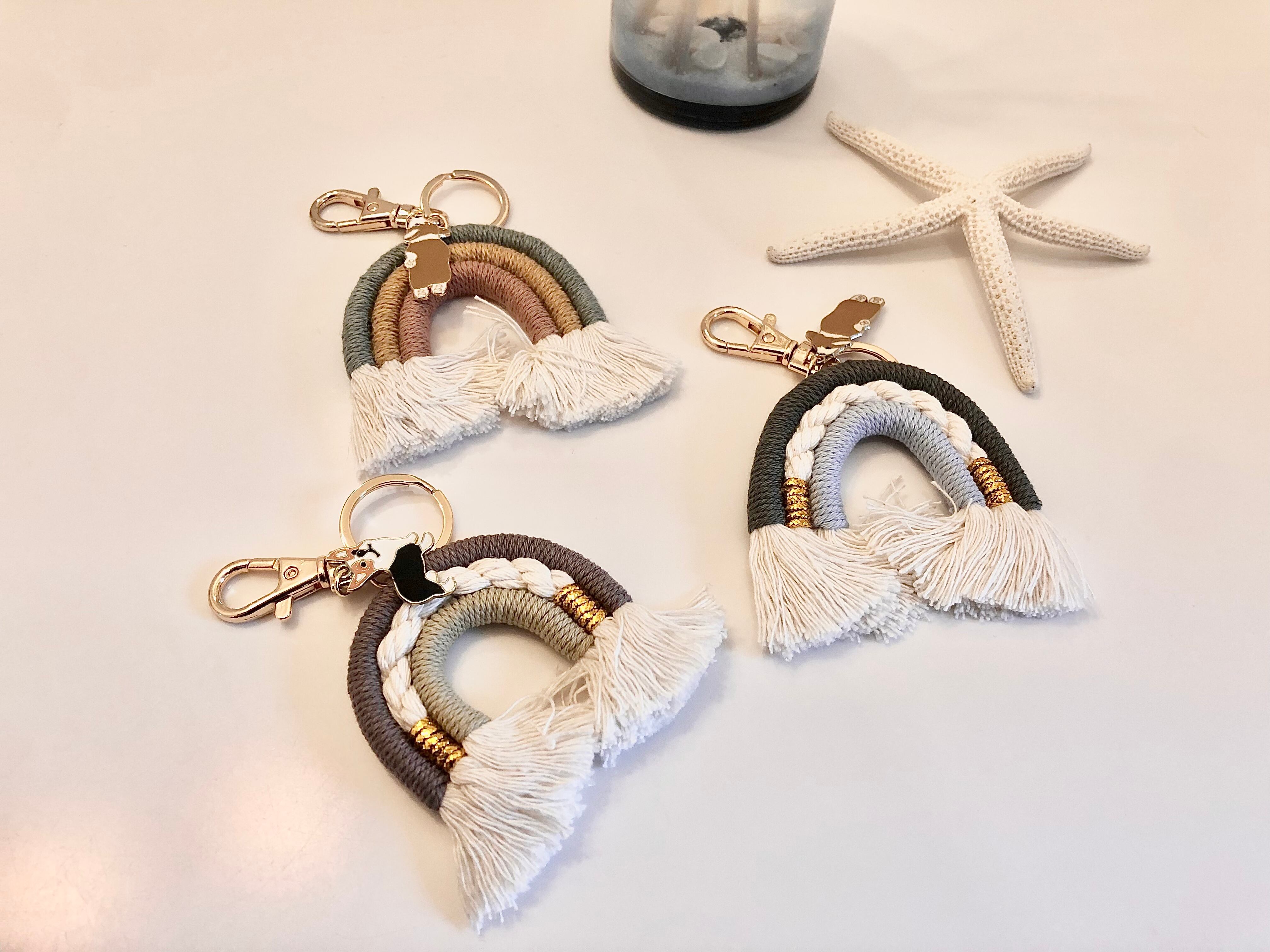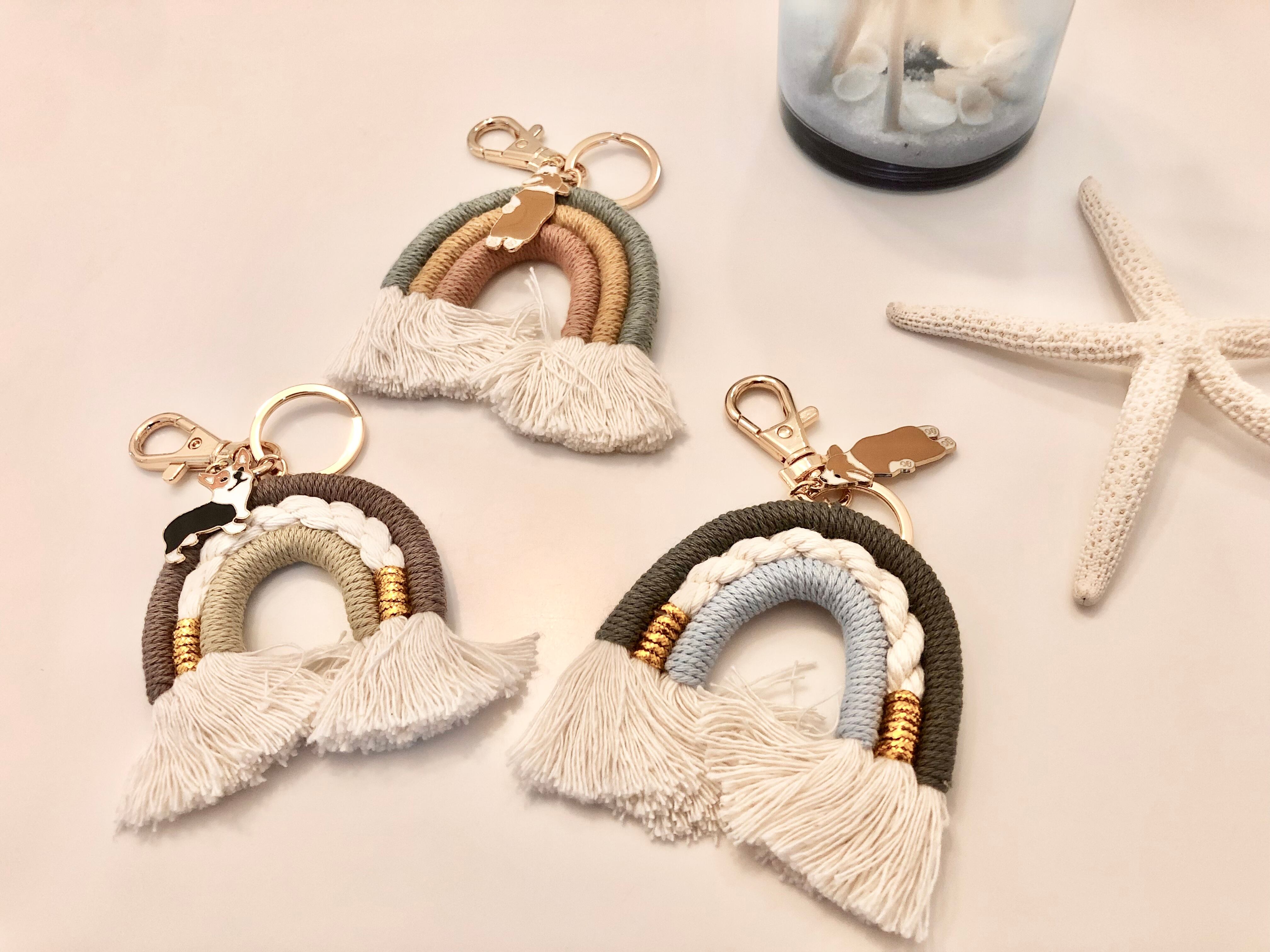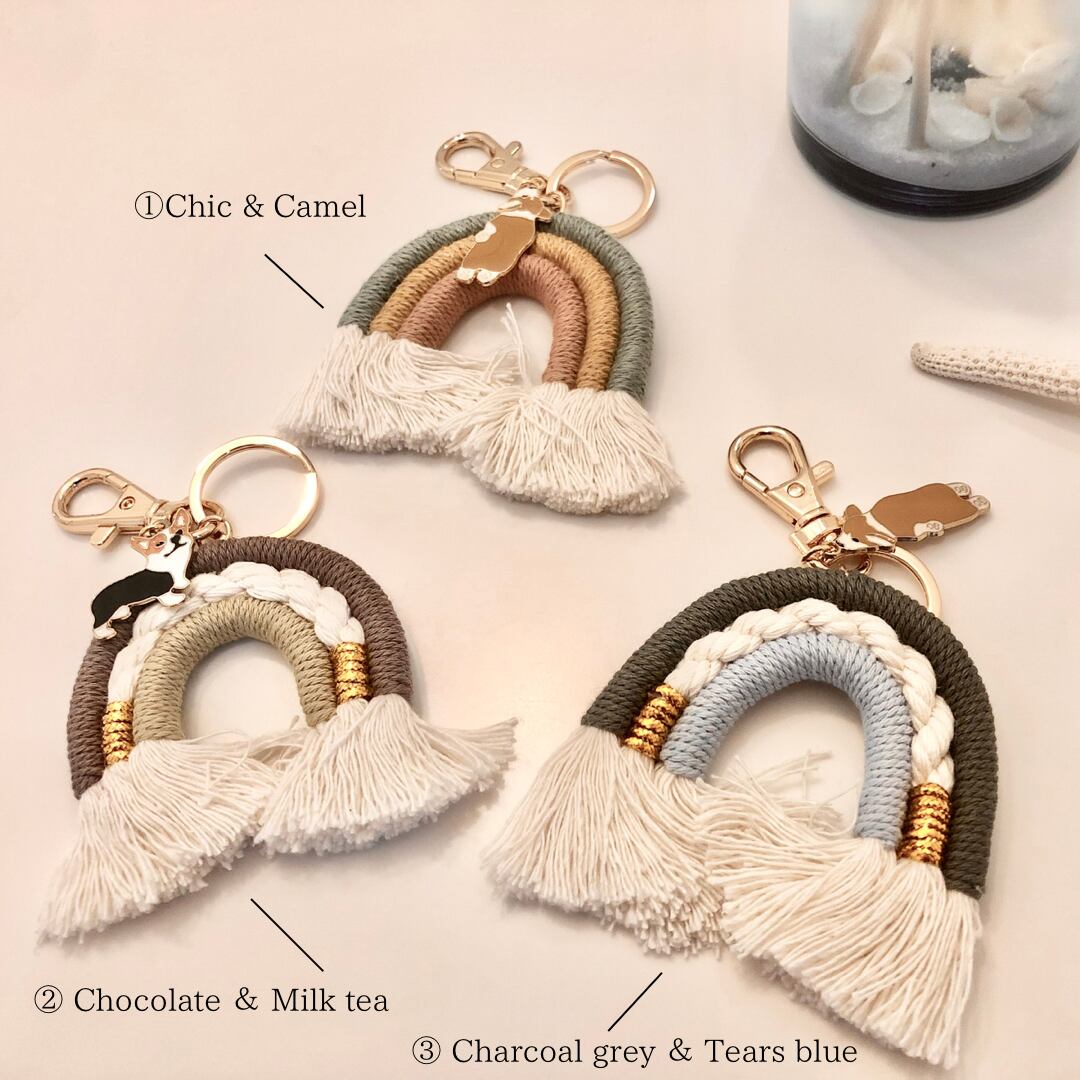 そんなマクラメレインボーとコーギーが揺れるキーホルダーです。