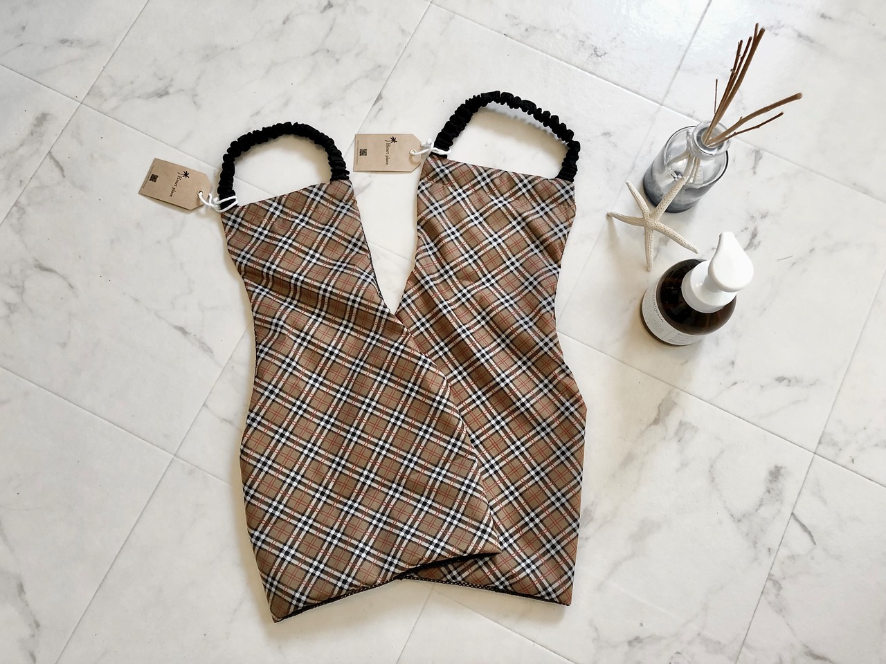 B◯rberry風 キャメルカラーのオトナ可愛いチェック柄のエプロンです*
