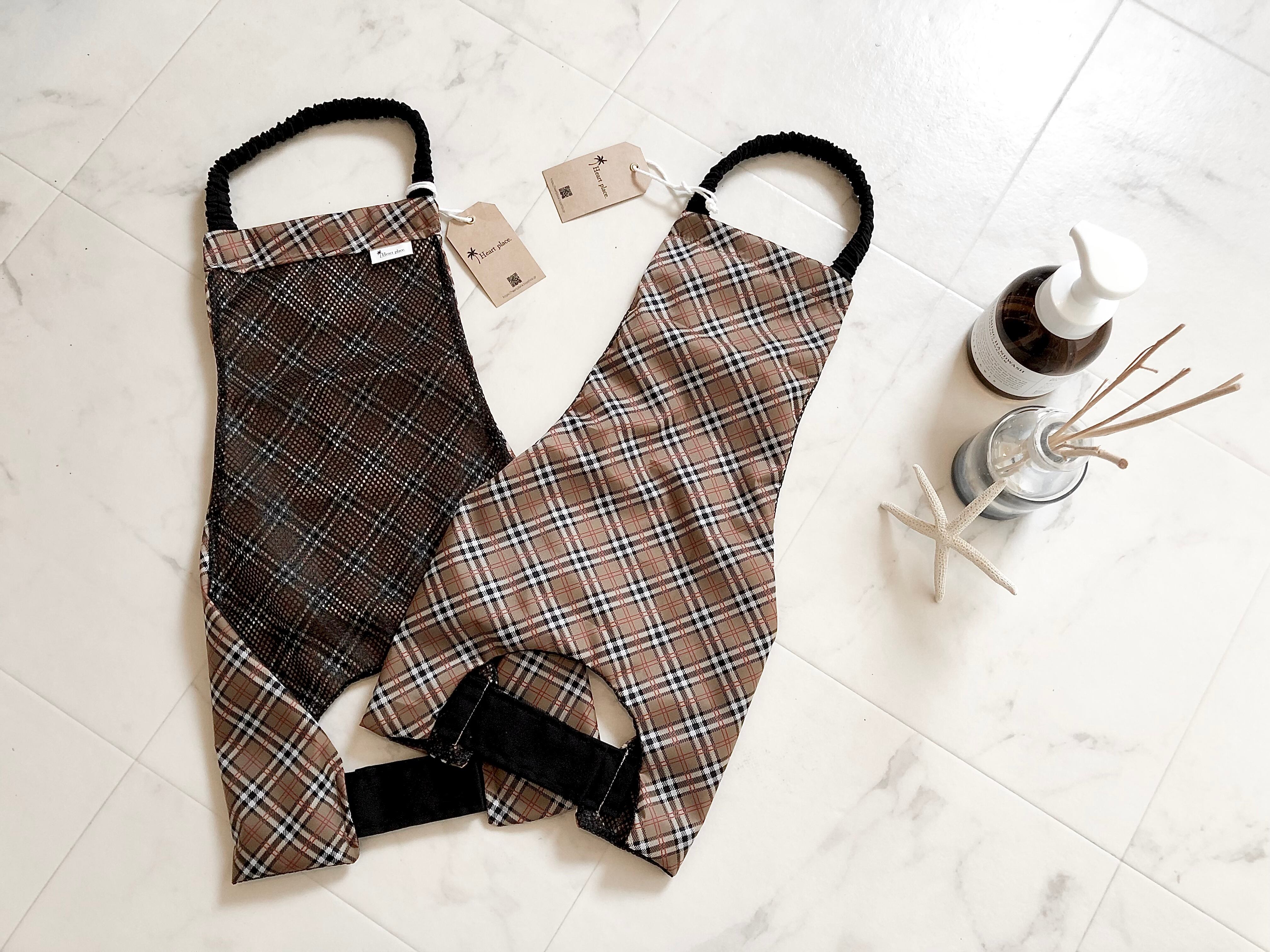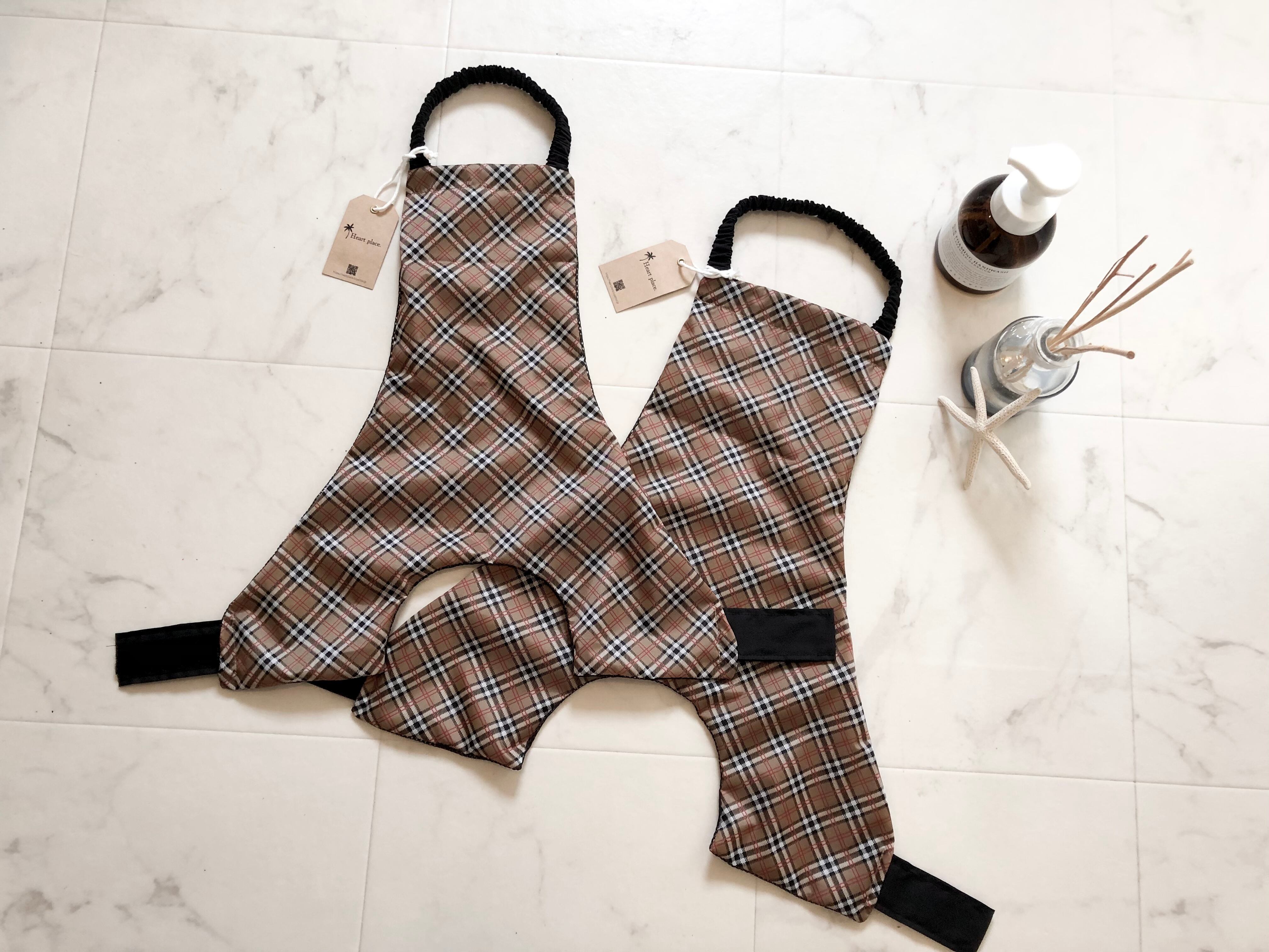 男の子用 Camel* チェック柄 コーギーお腹汚れ防止 泥除けエプロン
