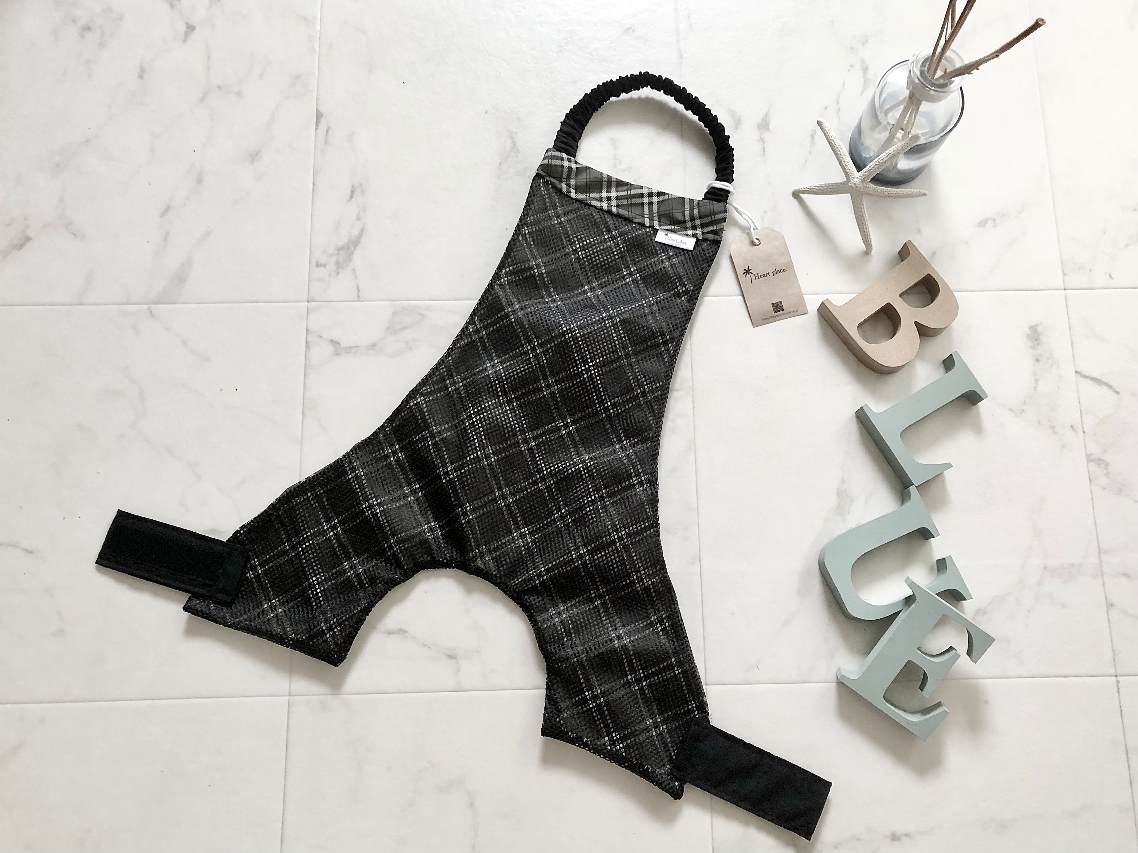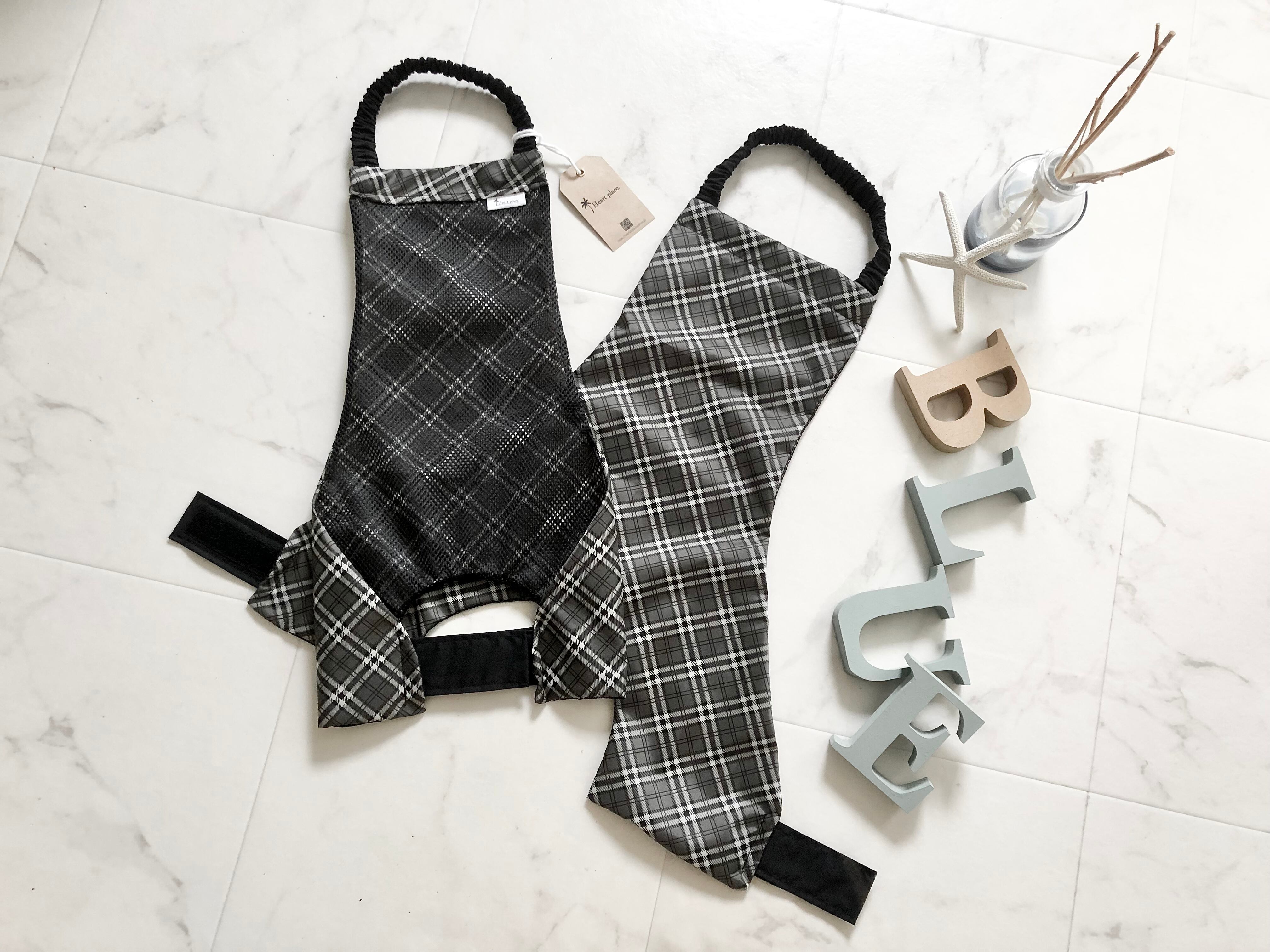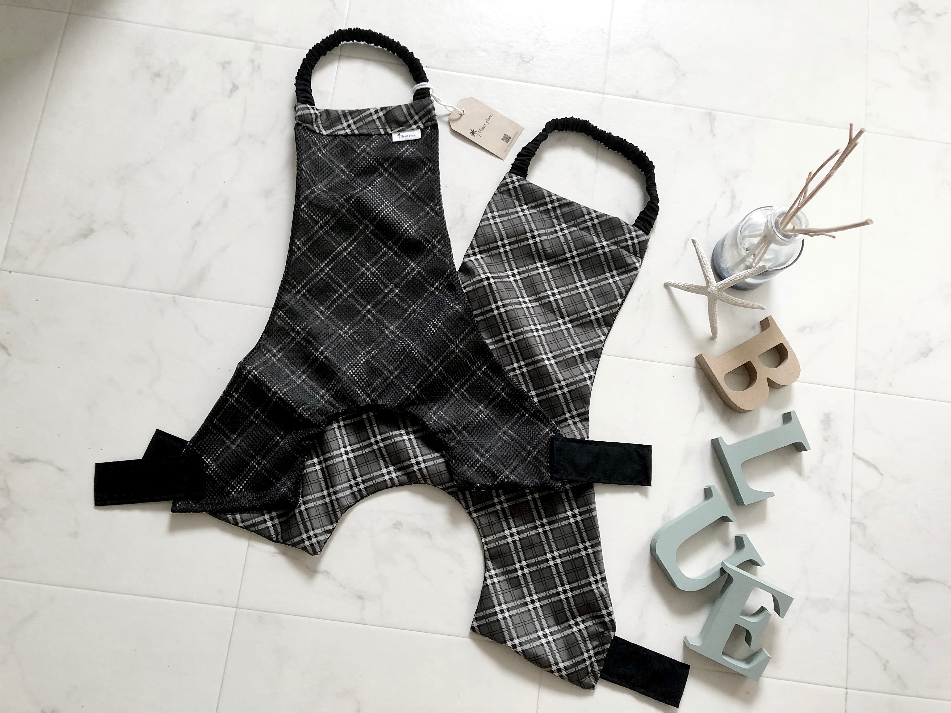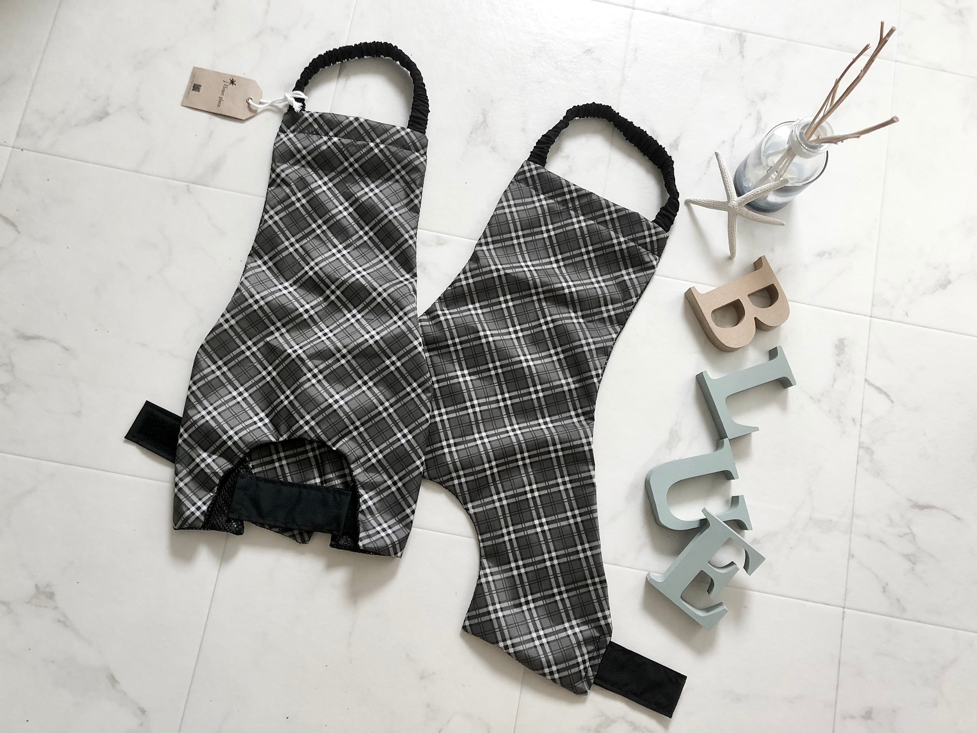 Noir* タータンチェック柄 コーギーお腹汚れ防止 泥除けエプロン