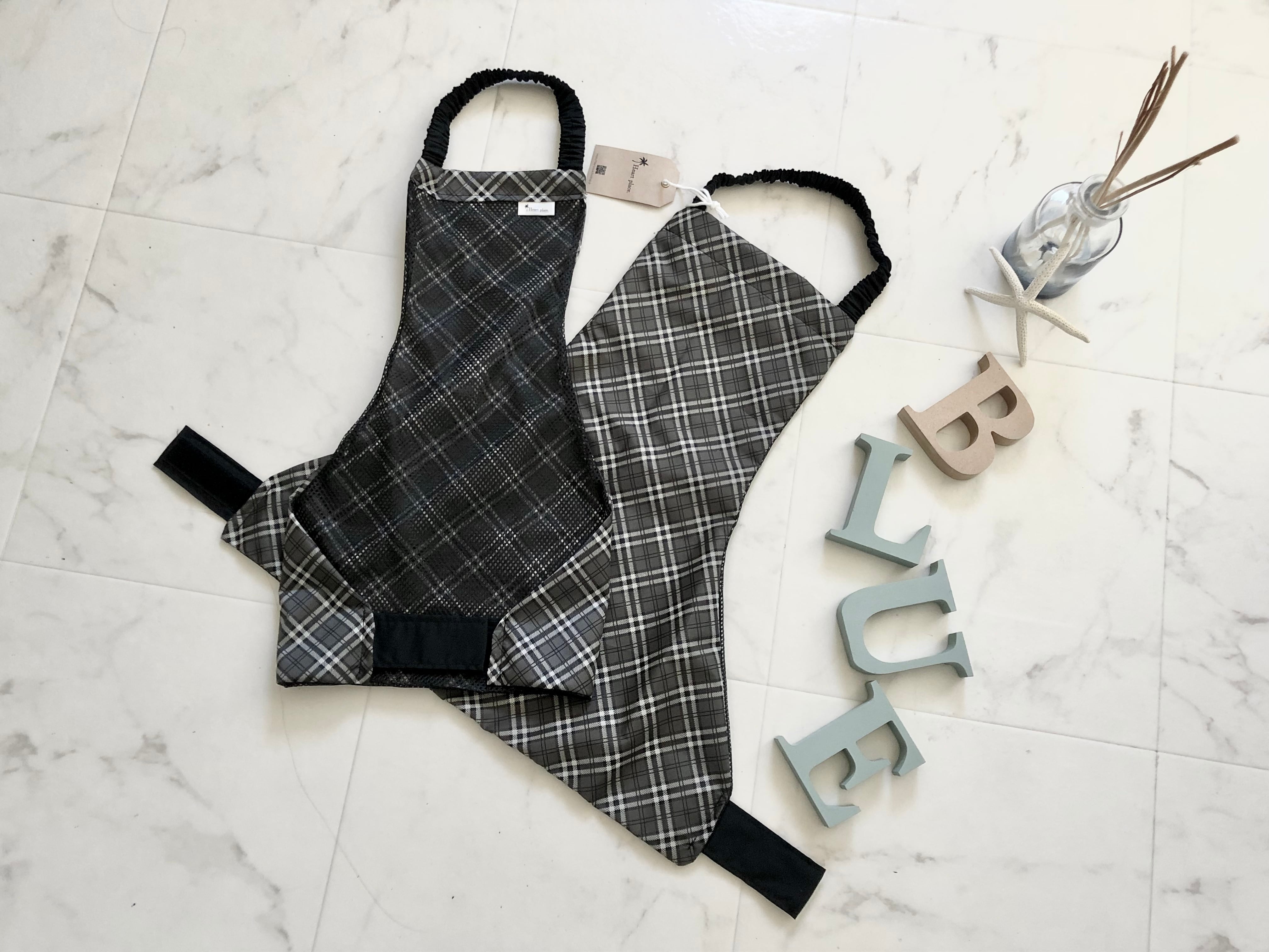Noir(ブラックカラー)とタータンチェック柄の泥除けエプロン*