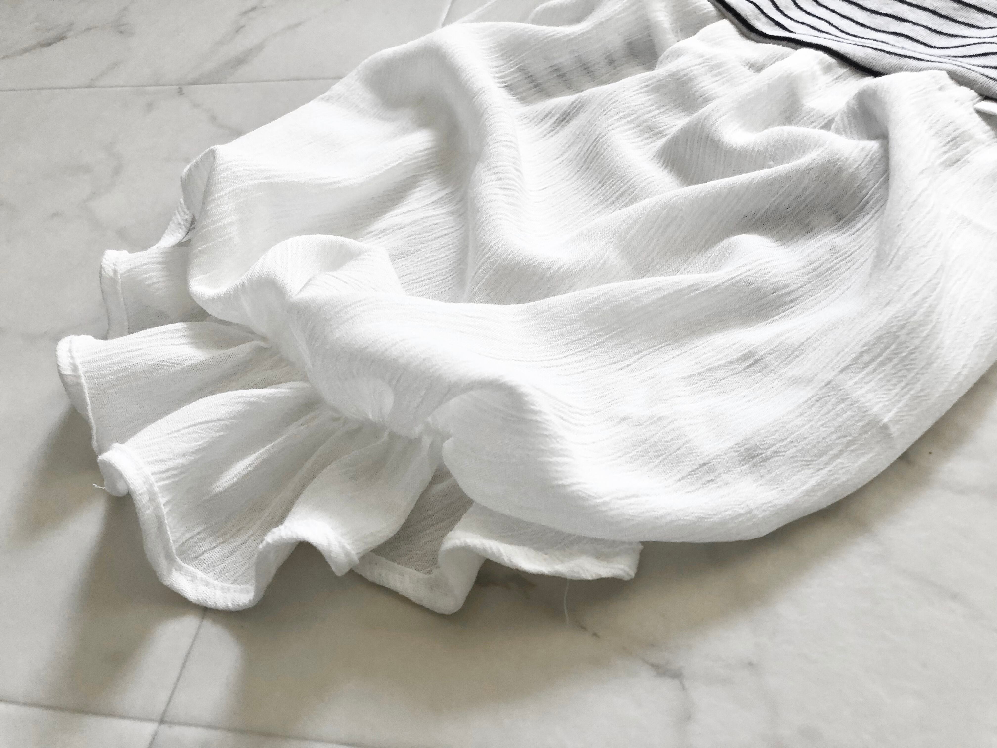 バルーン部分は薄手のサラッとしたモスリン生地を使用。 暑い季節でも負担が軽減するように、通気性の良い生地を採用しました。