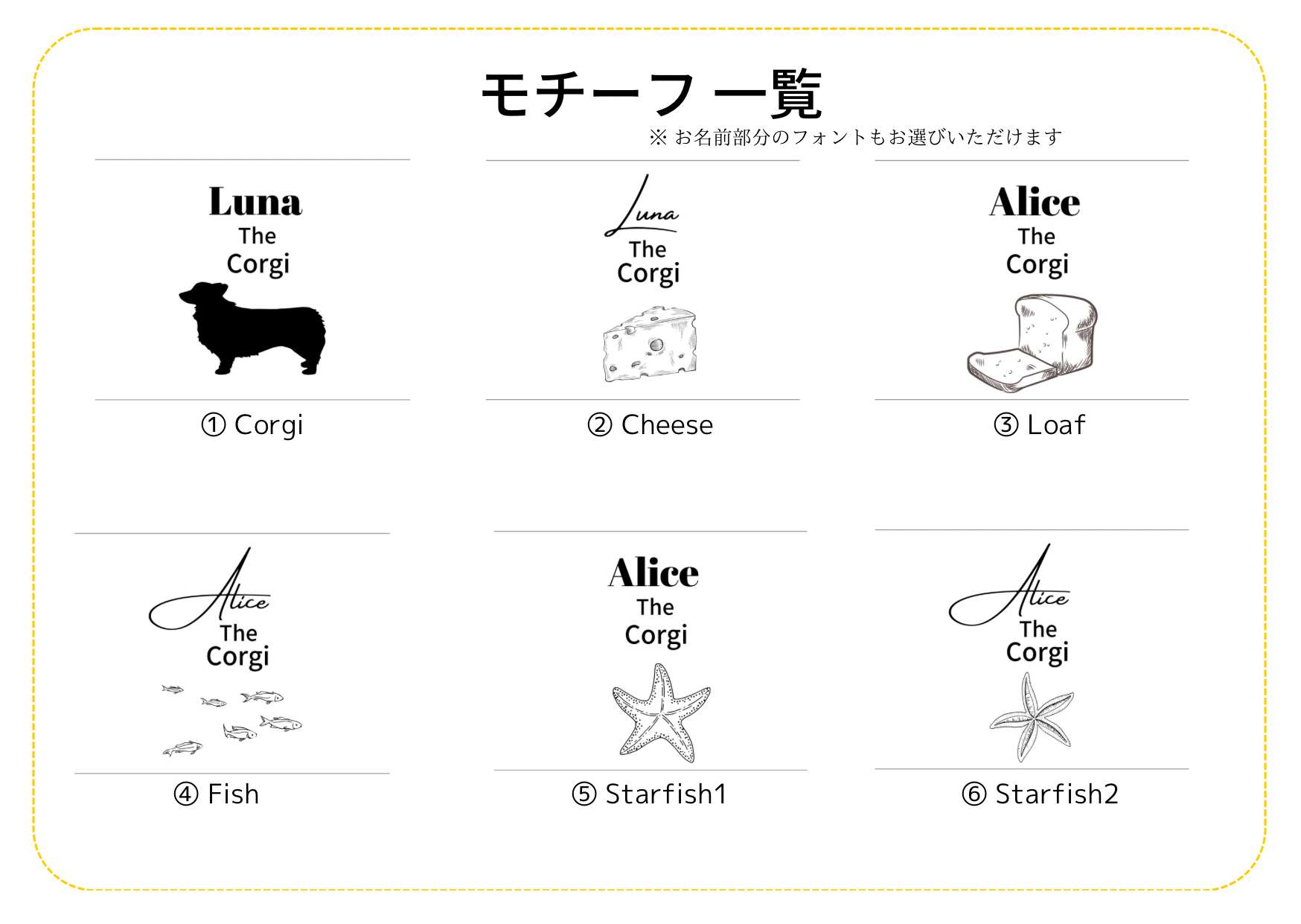 ※ネームタグについて。コーギー以外の犬種も承ります。その際は、注文備考欄に犬種をご入力下さい。