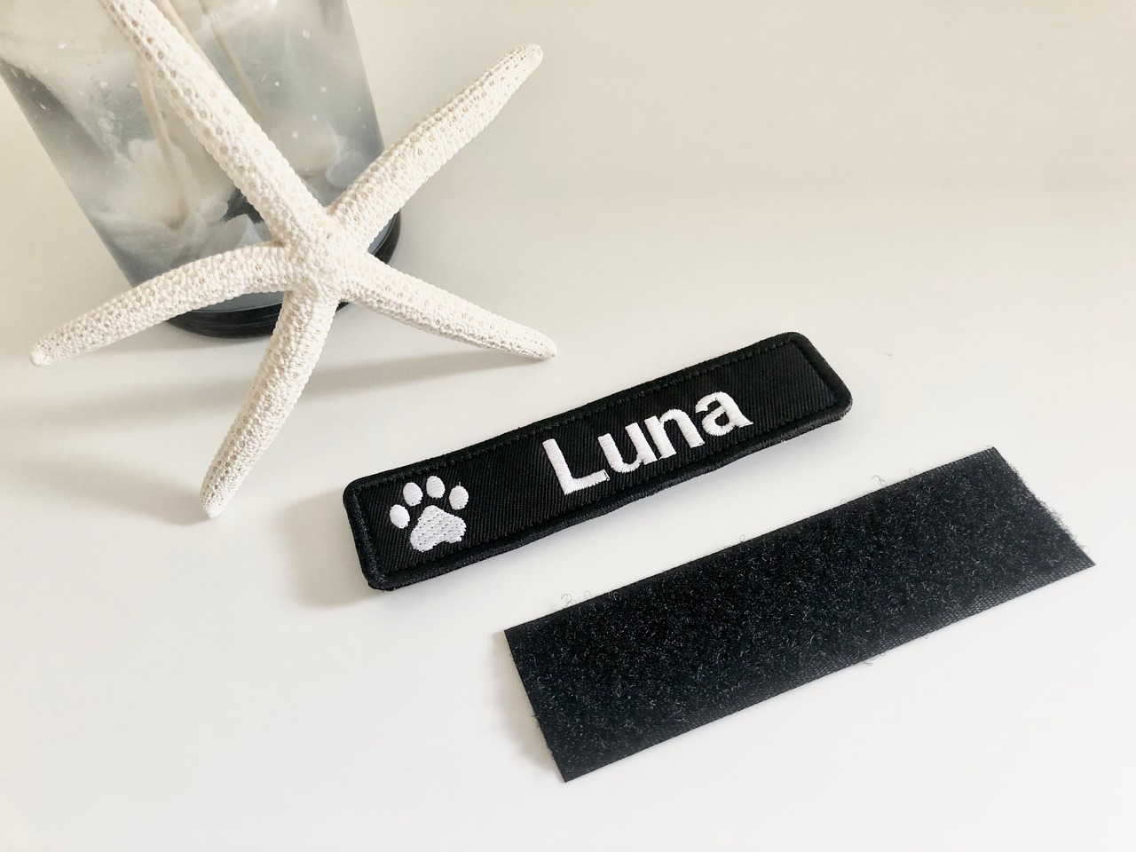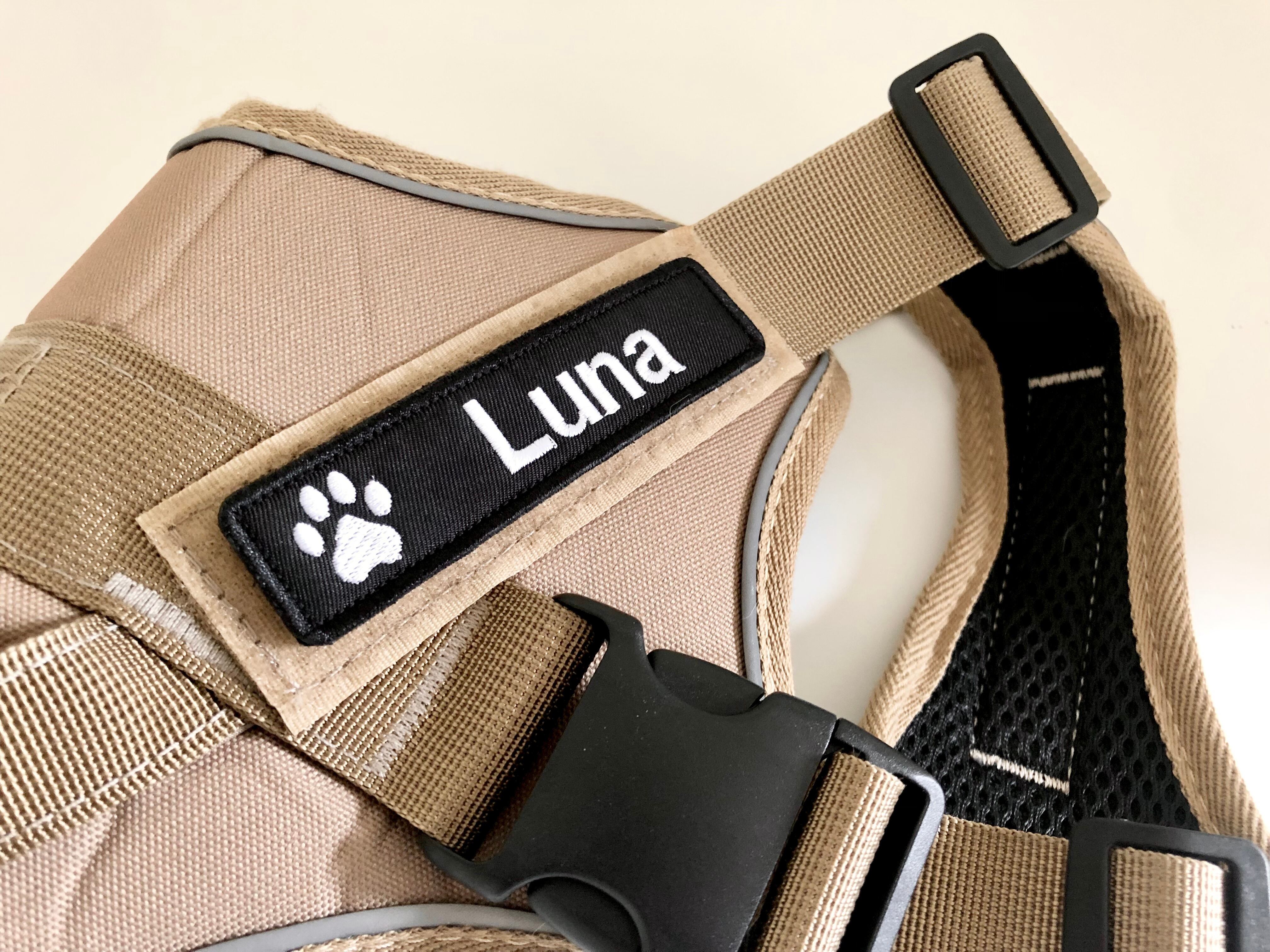 K9ハーネス他、マジックテープ付きのハーネスに取り付けできるネームタグです。